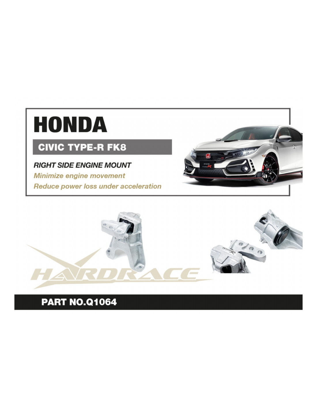 Supporto motore Hardrace per Honda Civic. Ideale per migliorare la precisione di guida, la stabilità dell'assetto e la risposta dello sterzo. Caratteristiche dal produttore : - 1 PCS/SET