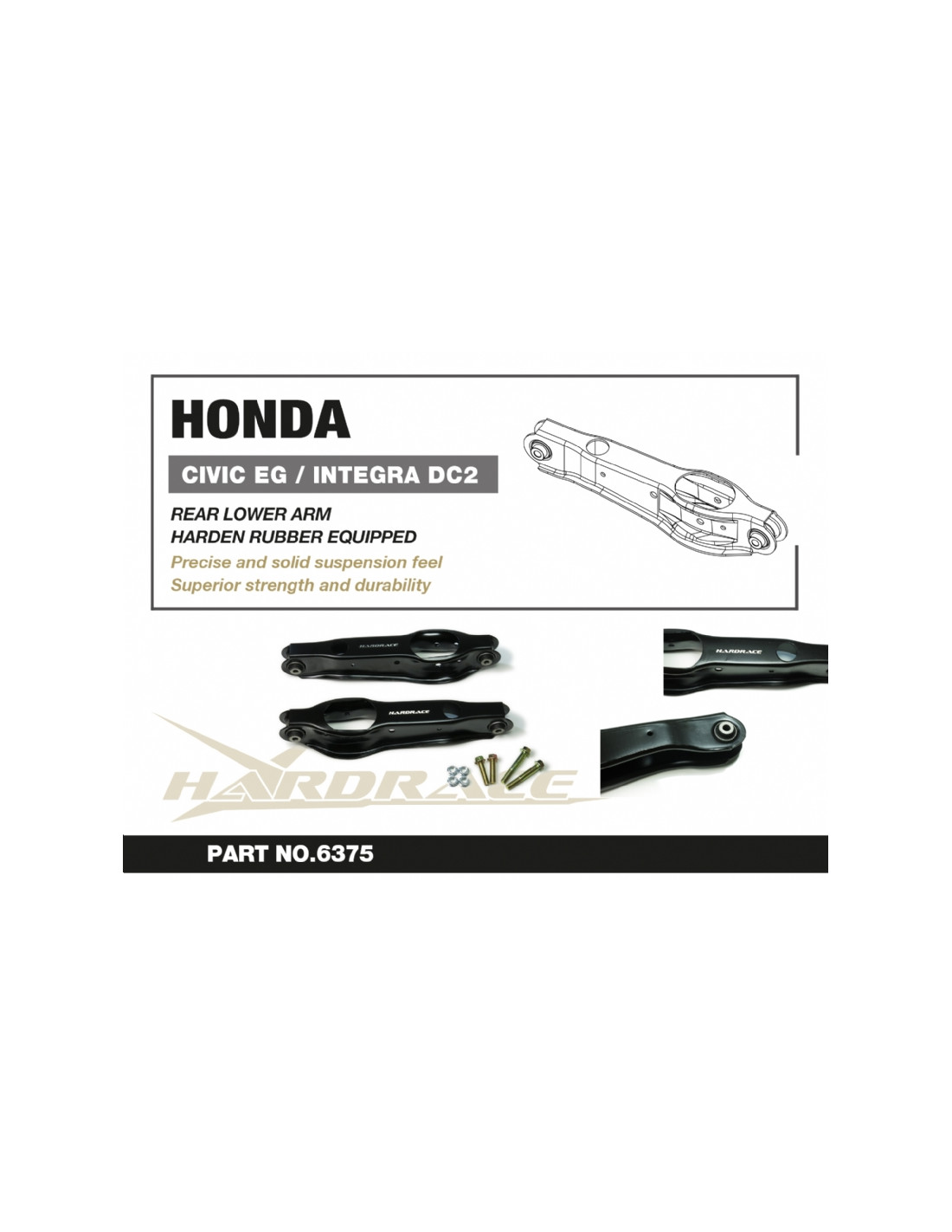 Braccio sospensione Hardrace per Honda Civic, Crx, Integra. Ideale per migliorare la precisione di guida, la stabilità dell'assetto e la risposta dello sterzo. Caratteristiche dal produttore : - OE Style / JDM Harden Rubber Equipped 2 PCS/SET