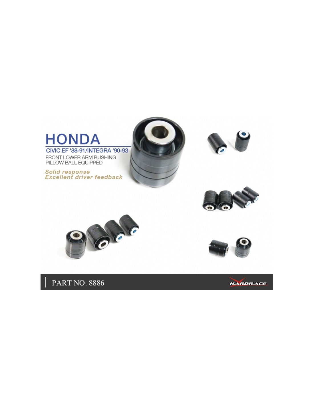 Silent block Hardrace per Honda Civic, Integra. Ideale per migliorare la precisione di guida, la stabilità dell'assetto e la risposta dello sterzo. Caratteristiche dal produttore : - Pillow Ball Equipped. 4 PCS/SET