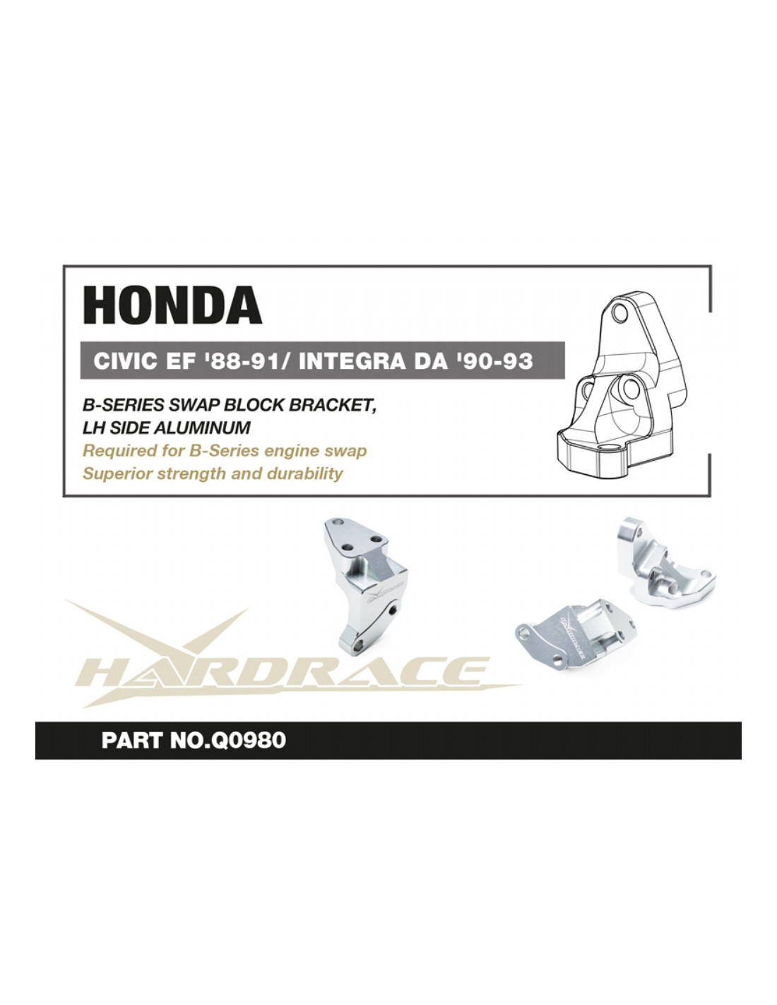 Supporto motore Hardrace per Honda Civic, Integra, CRX. Ideale per migliorare la precisione di guida, la stabilità dell'assetto e la risposta dello sterzo. Caratteristiche dal produttore : - 1 PCS/SET