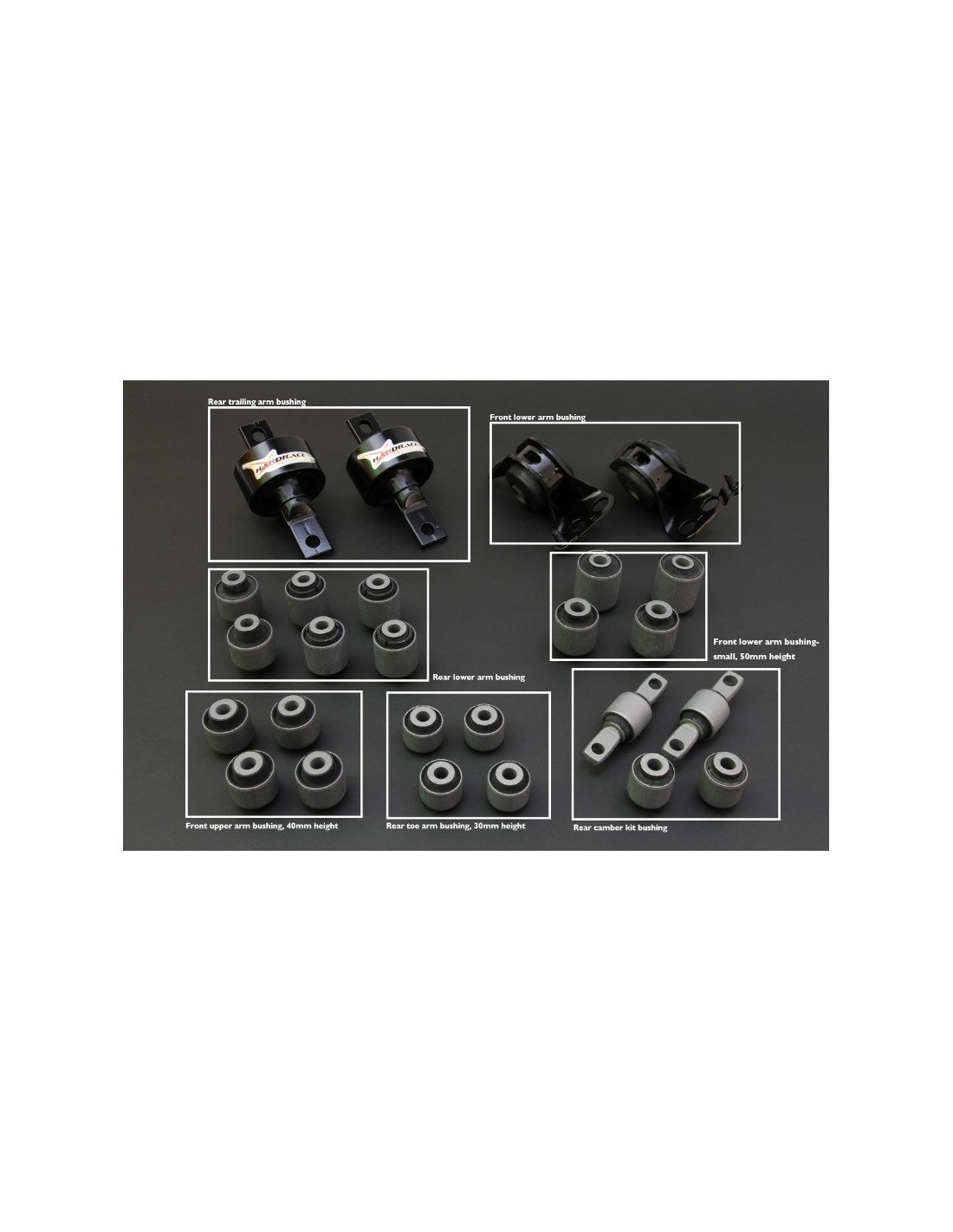 Silent block Hardrace per Honda Civic, Crx, Integra. Ideale per migliorare la precisione di guida, la stabilità dell'assetto e la risposta dello sterzo. Caratteristiche dal produttore : - Harden Rubber Equipped 26 PCS/SET For USDM Use