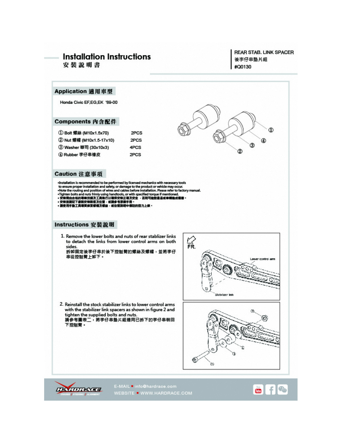 Bielletta barra stabilizzatrice Hardrace per Honda Civic, Crx, Integra. Ideale per migliorare la precisione di guida, la stabilità dell'assetto e la risposta dello sterzo. Caratteristiche dal produttore : - 2 PCS/SET