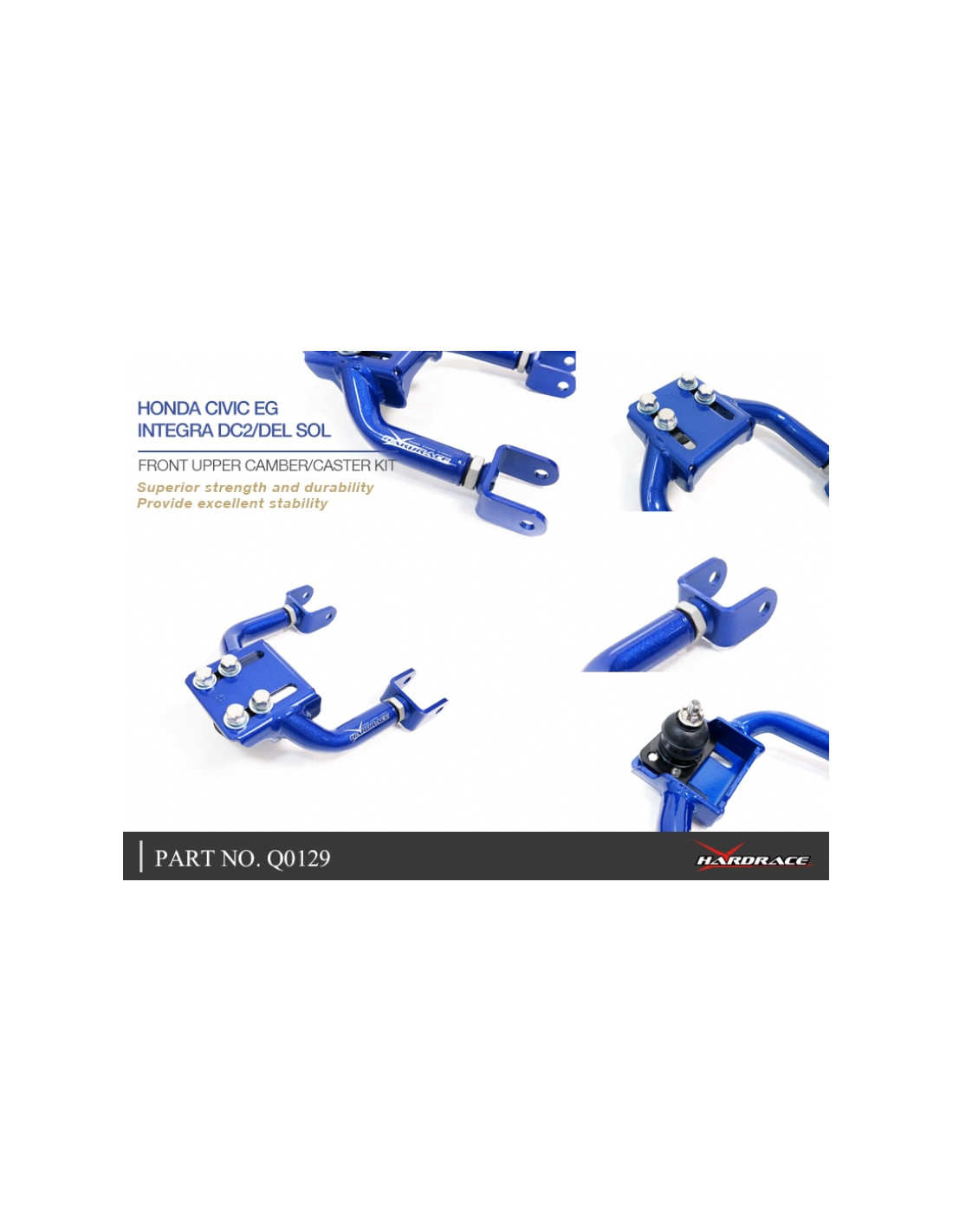 Braccio sospensione Hardrace per Honda Civic, Crx, Integra. Ideale per migliorare la precisione di guida, la stabilità dell'assetto e la risposta dello sterzo. Caratteristiche dal produttore : - Camber/Caster Kit Camber/Caster +/-2 degrees Bushings not included 2 PCS/SET