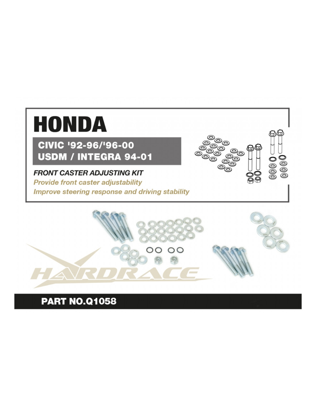 Braccio sospensione Hardrace per Honda Civic, Integra. Ideale per migliorare la precisione di guida, la stabilità dell'assetto e la risposta dello sterzo. Caratteristiche dal produttore : - Caster Adjustment Range: +0°~2.5° * Civic EK '96-00: For USDM EJ6/7/8 Use Only 32 PCS/SET