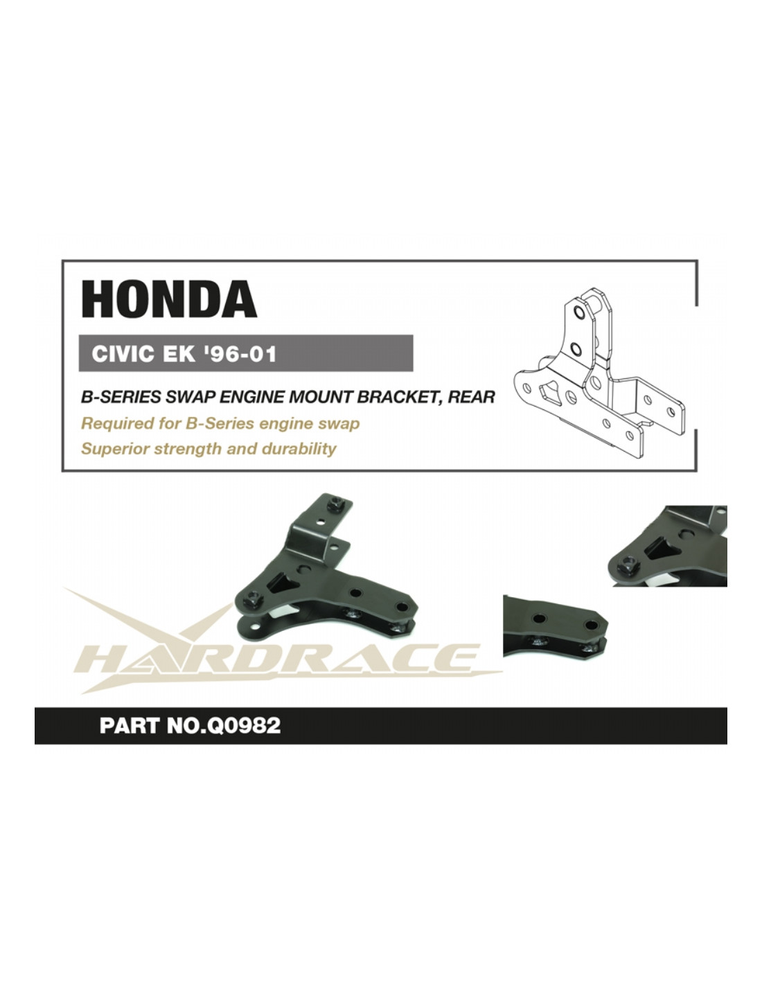 Supporto motore Hardrace per Honda Civic. Ideale per migliorare la precisione di guida, la stabilità dell'assetto e la risposta dello sterzo. Caratteristiche dal produttore : - 1 PCS/SET