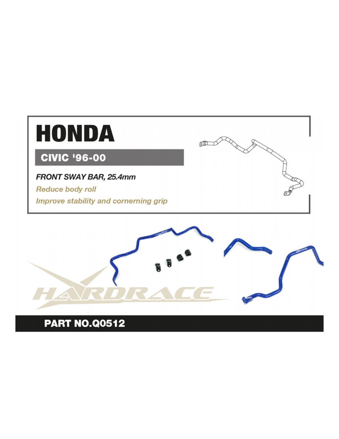 Barra stabilizzatrice Hardrace per Honda Civic. Ideale per migliorare la precisione di guida, la stabilità dell'assetto e la risposta dello sterzo. Caratteristiche dal produttore : - 25.4 mm * USDM cars: SI (EM1) or JDM Type LCA and end links required 5 PCS/SET