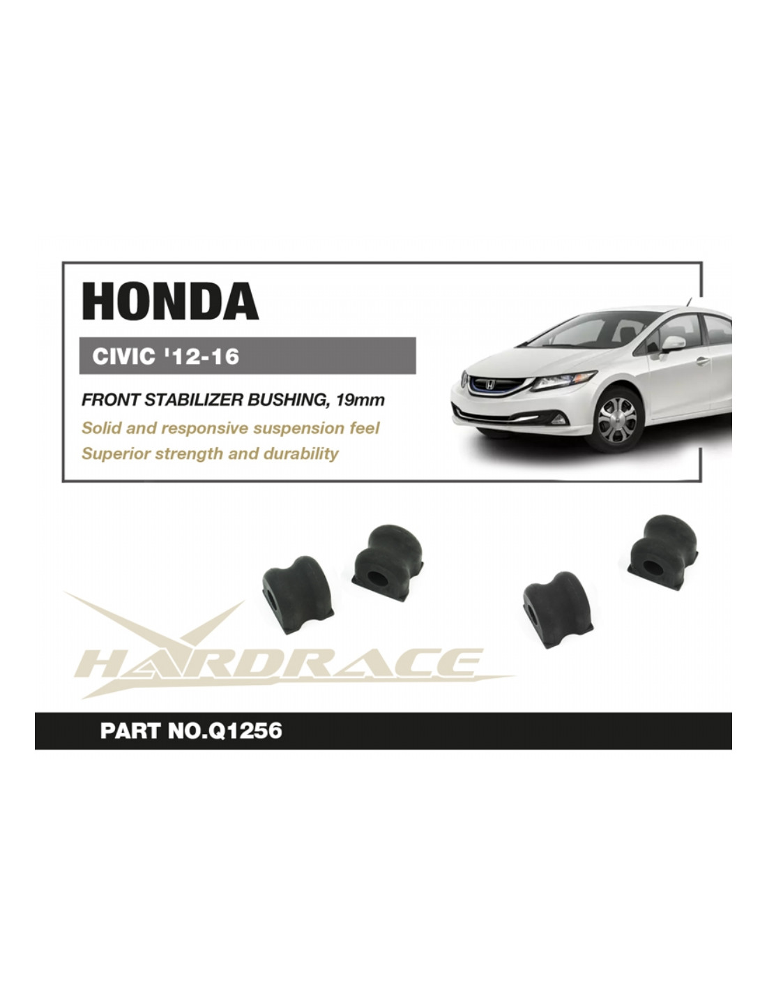 Silent block Hardrace per Honda Civic. Ideale per migliorare la precisione di guida, la stabilità dell'assetto e la risposta dello sterzo. Caratteristiche dal produttore : - 19 mm 2 PCS/SET