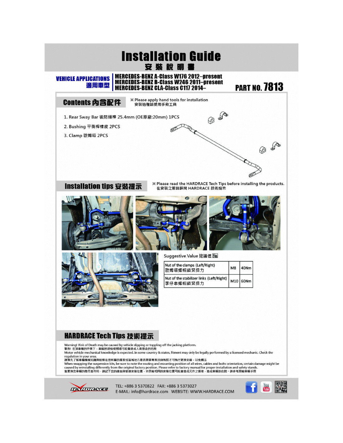 Barra stabilizzatrice Hardrace per Infiniti, Mercedes. Ideale per migliorare la precisione di guida, la stabilità dell'assetto e la risposta dello sterzo. Caratteristiche dal produttore : - 25.4 mm 5 PCS/SET *FOR 2WD USE