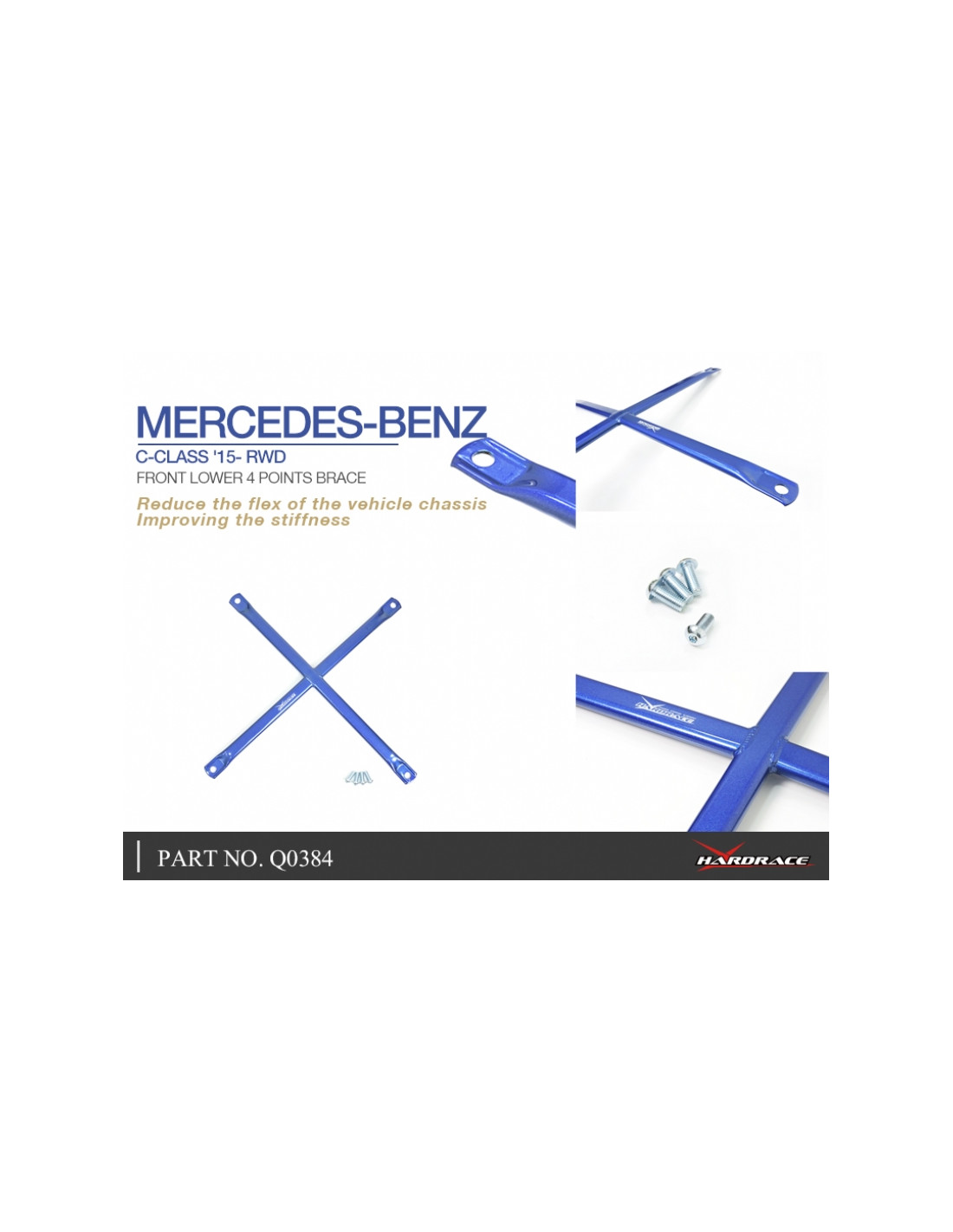 Barra rinforzo Hardrace per Mercedes C-class. Ideale per migliorare la precisione di guida, la stabilità dell'assetto e la risposta dello sterzo. Caratteristiche dal produttore : - * For 2WD Use * Not for C63 AMG 1 PCS/SET