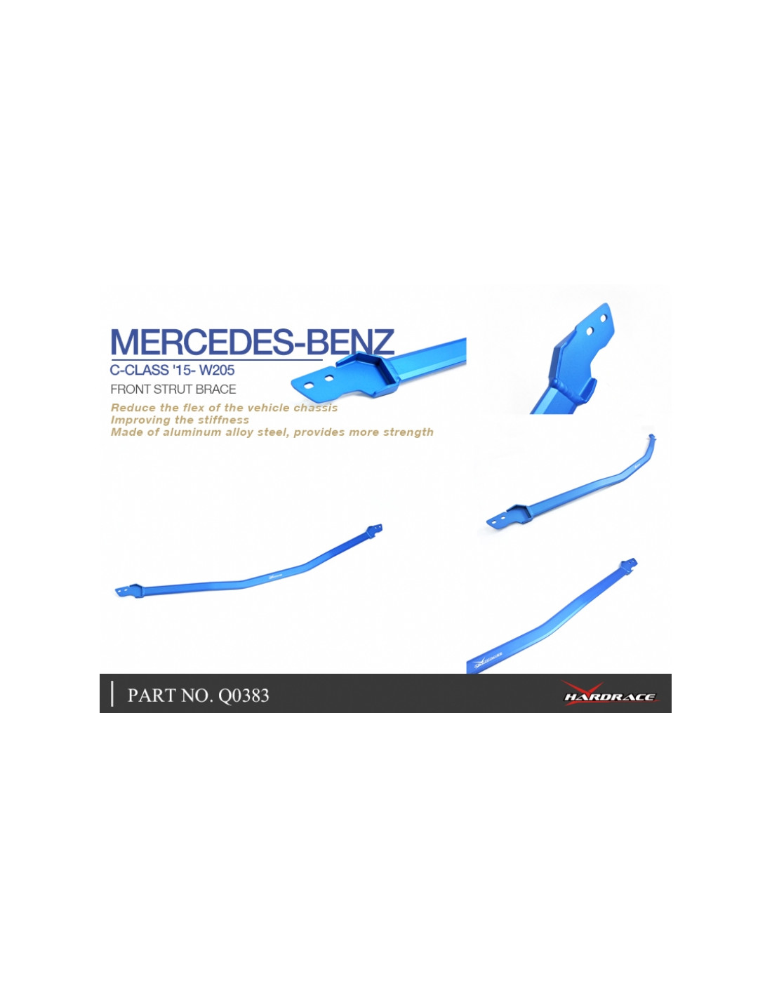 Barra rinforzo Hardrace per Mercedes C-class. Ideale per migliorare la precisione di guida, la stabilità dell'assetto e la risposta dello sterzo. Caratteristiche dal produttore : - * Not For C63 AMG 1 PCS/SET