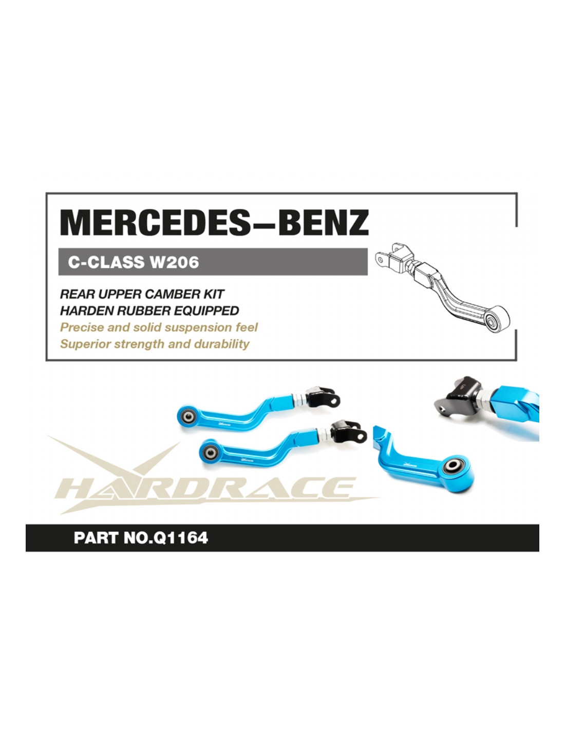 Braccio sospensione Hardrace per Mercedes C-class. Ideale per migliorare la precisione di guida, la stabilità dell'assetto e la risposta dello sterzo. Caratteristiche dal produttore : - Harden Rubber Equipped 2 PCS/SET