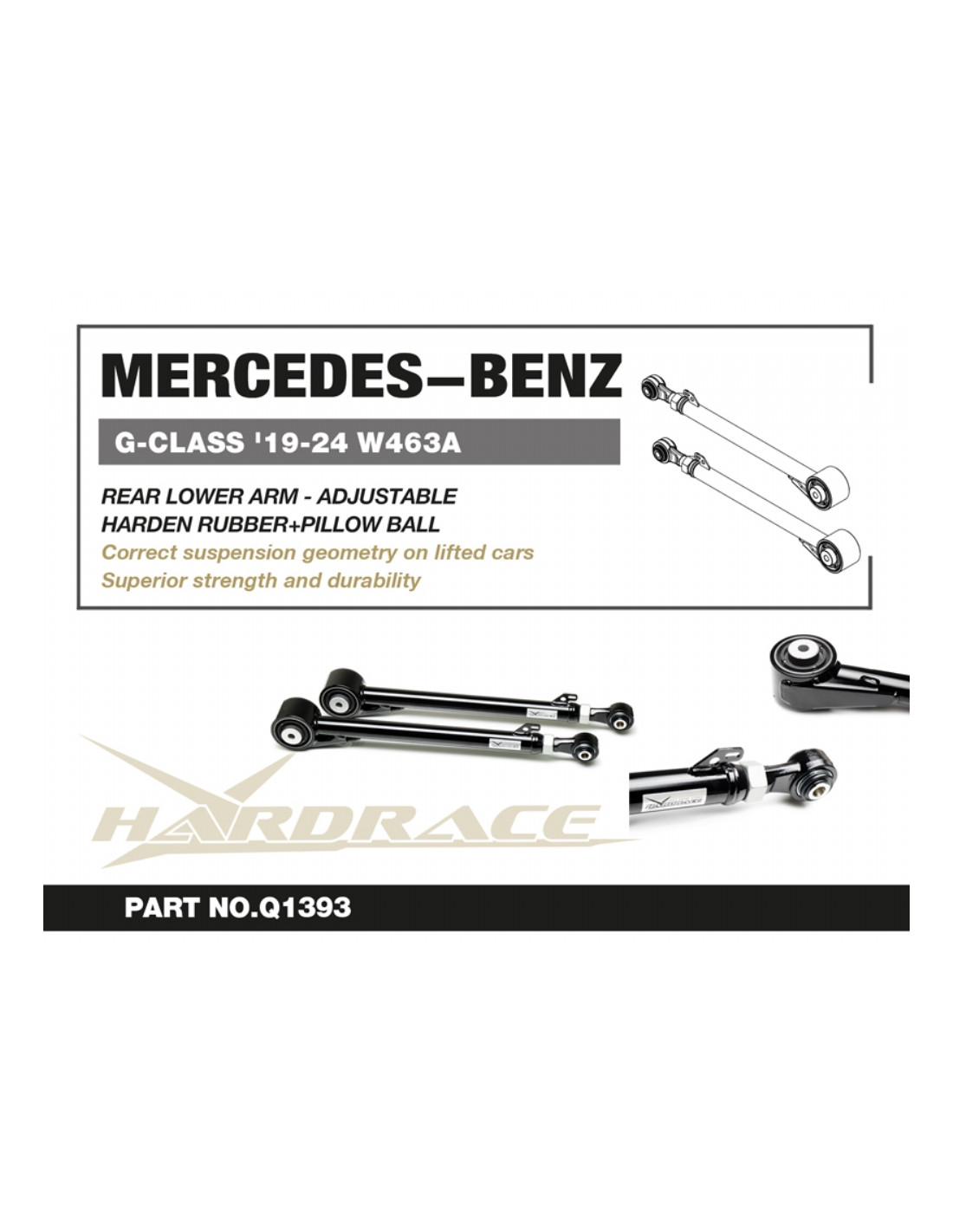 Braccio sospensione Hardrace per Mercedes G-class. Ideale per migliorare la precisione di guida, la stabilità dell'assetto e la risposta dello sterzo. Caratteristiche dal produttore : - Pillow Ball + Harden Rubber Bushings 2 PCS/SET