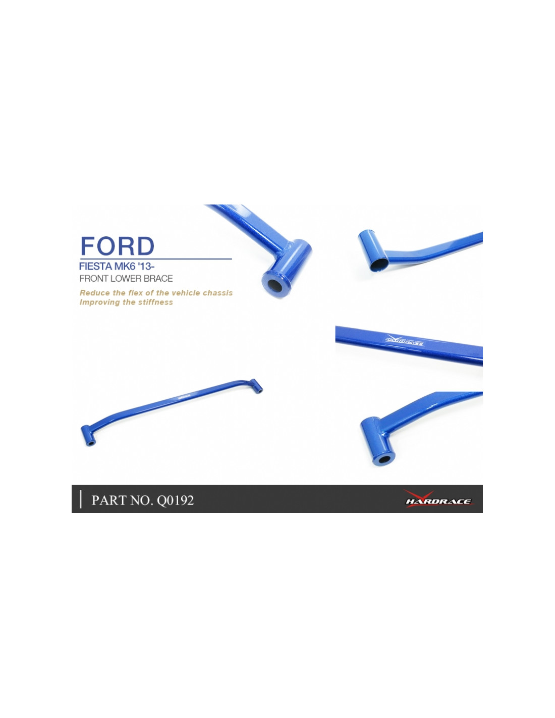 Barra rinforzo Hardrace per Ford Fiesta. Ideale per migliorare la precisione di guida, la stabilità dell'assetto e la risposta dello sterzo. Caratteristiche dal produttore : - 1 PCS/SET For 2013- 2017 model use Not for ST use