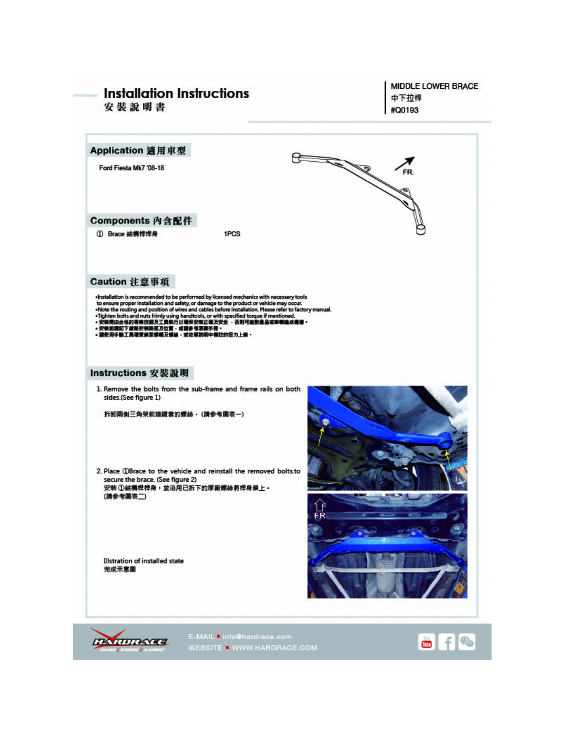 Barra rinforzo Hardrace per Ford Fiesta. Ideale per migliorare la precisione di guida, la stabilità dell'assetto e la risposta dello sterzo. Caratteristiche dal produttore : - 1 PCS/SET * For Asia Spec Only (Taiwan/Thailand/China-built)