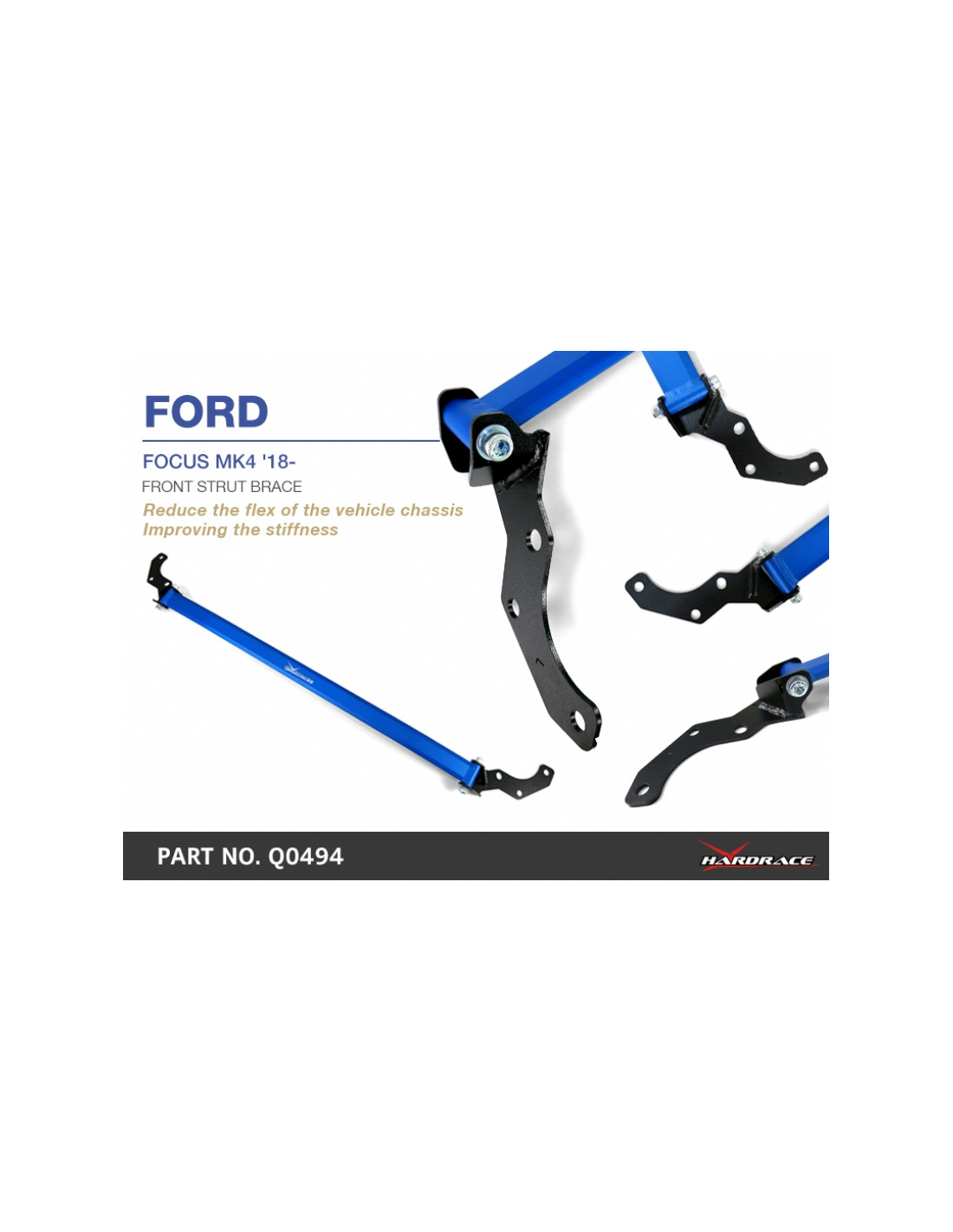 Barra rinforzo Hardrace per Ford Focus. Ideale per migliorare la precisione di guida, la stabilità dell'assetto e la risposta dello sterzo. Caratteristiche dal produttore : - 1PCS/SET * For non-2.3 ST use