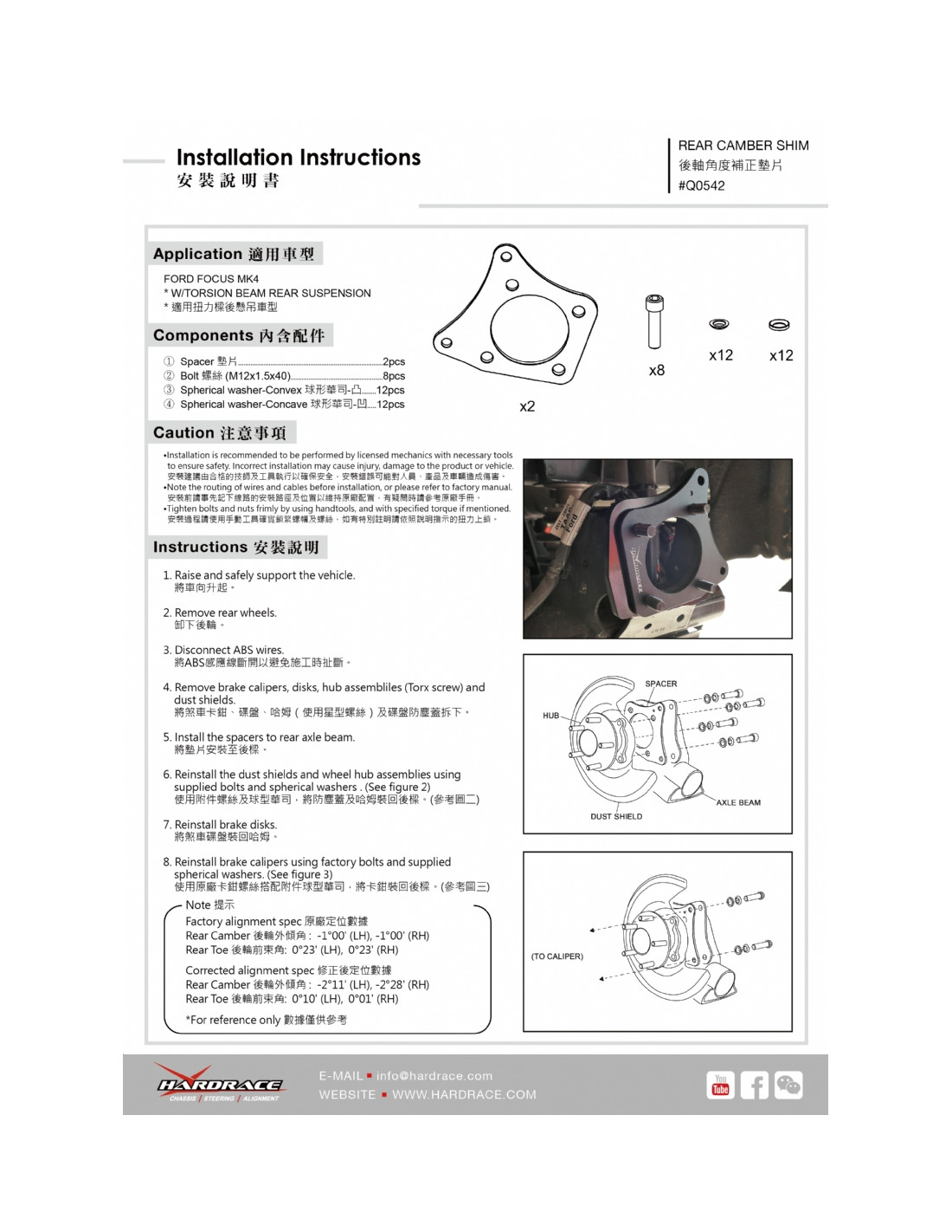 Silent block Hardrace per Ford Focus. Ideale per migliorare la precisione di guida, la stabilità dell'assetto e la risposta dello sterzo. Caratteristiche dal produttore : - 2 PCS/SET TOE IN FROM 0.2° TO 0.1° ADD NEGATIVE CAMBER BY 1° * For torsion beam rear axle