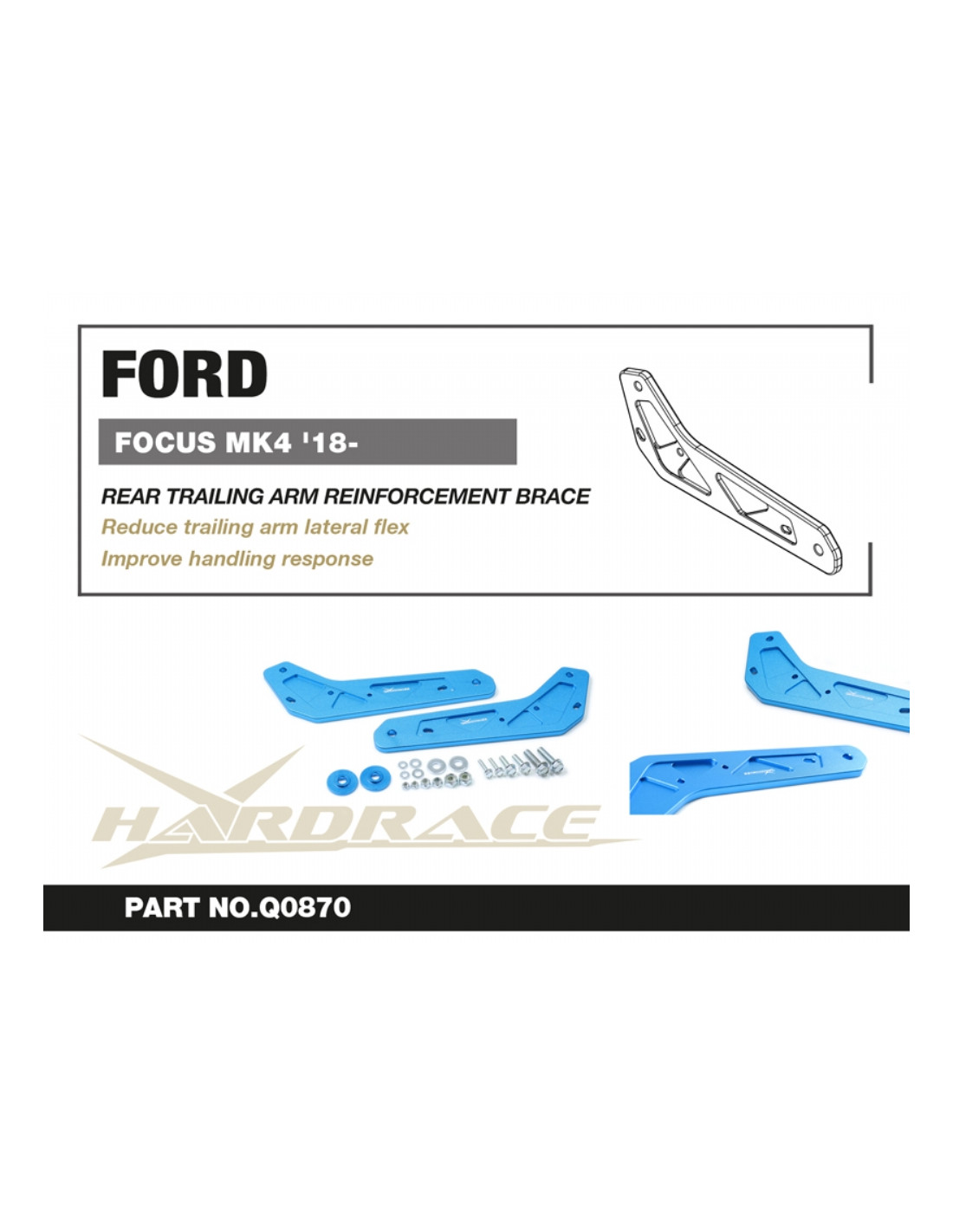 Barra rinforzo Hardrace per Ford Focus. Ideale per migliorare la precisione di guida, la stabilità dell'assetto e la risposta dello sterzo. Caratteristiche dal produttore : - For multi-link rear axle 2 PCS/SET