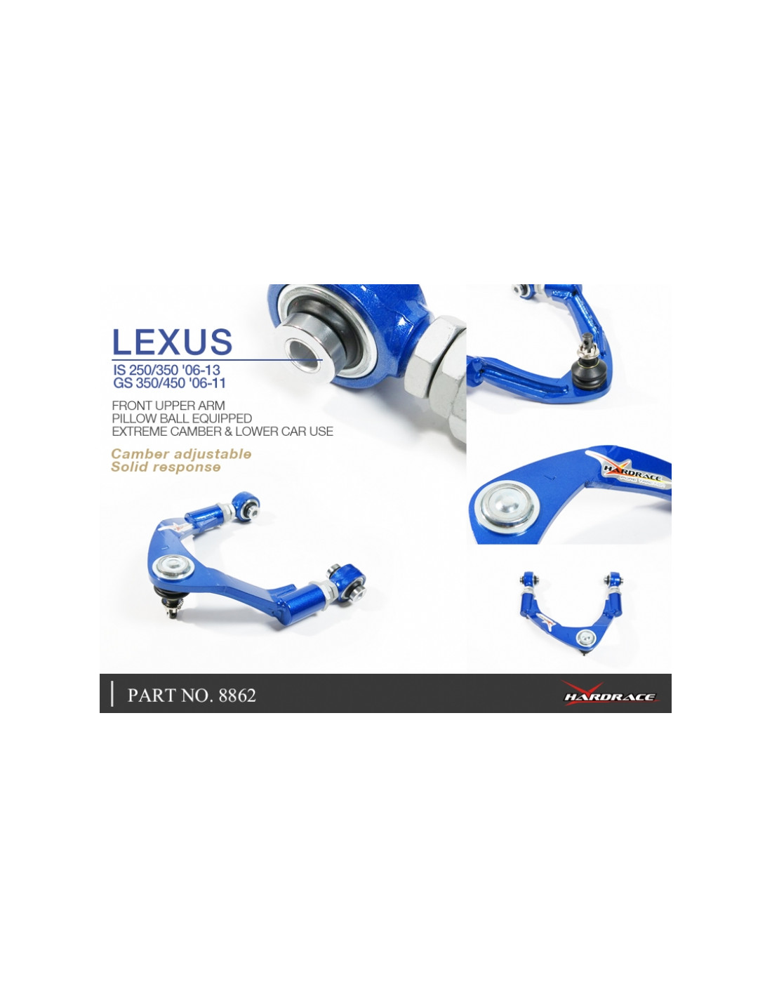 Braccio sospensione Hardrace per Lexus GS, IS. Ideale per migliorare la precisione di guida, la stabilità dell'assetto e la risposta dello sterzo. Caratteristiche dal produttore : - Pillow Ball Equipped 2 PCS/SET Extreme Camber &