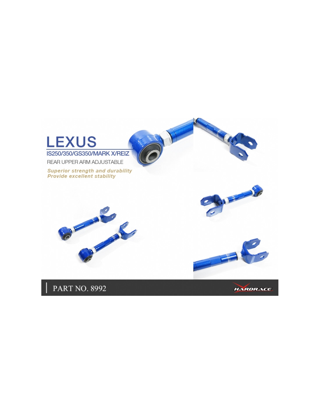 Braccio sospensione Hardrace per Lexus GS, IS, Toyota Mark x. Ideale per migliorare la precisione di guida, la stabilità dell'assetto e la risposta dello sterzo. Caratteristiche dal produttore : - Adjustable Harden Rubber Equipped. 2 PCS/SET