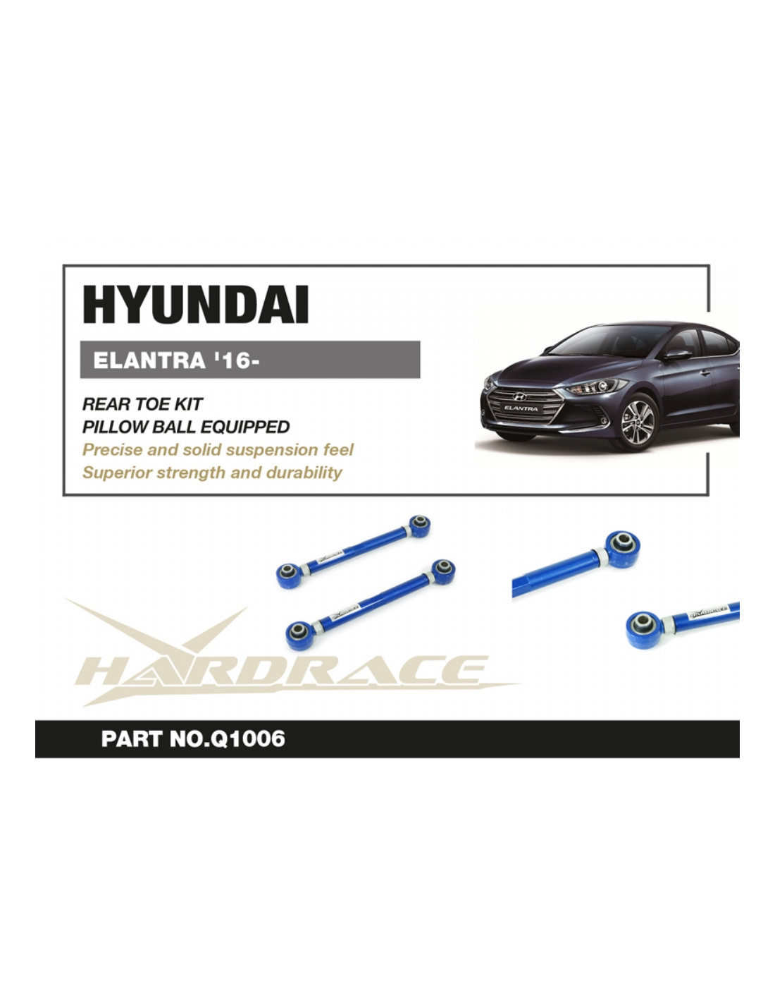 Braccio sospensione Hardrace per Hyundai Elantra, i-30, Ioniq, Veloster. Ideale per migliorare la precisione di guida, la stabilità dell'assetto e la risposta dello sterzo. Caratteristiche dal produttore : - Pillow Ball Equipped *For Multi-link rear axle *Including I30 N/Veloster N 2 PCS/SET