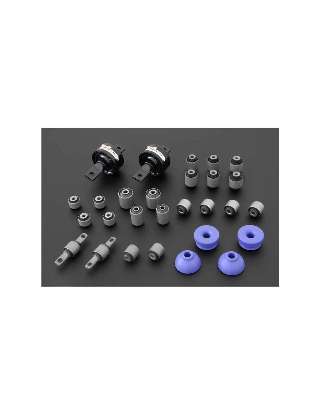 Silent block Hardrace per Honda Integra. Ideale per migliorare la precisione di guida, la stabilità dell'assetto e la risposta dello sterzo. Caratteristiche dal produttore : - Harden Rubber Equipped 28 PCS/SET For DA 90-93 Use