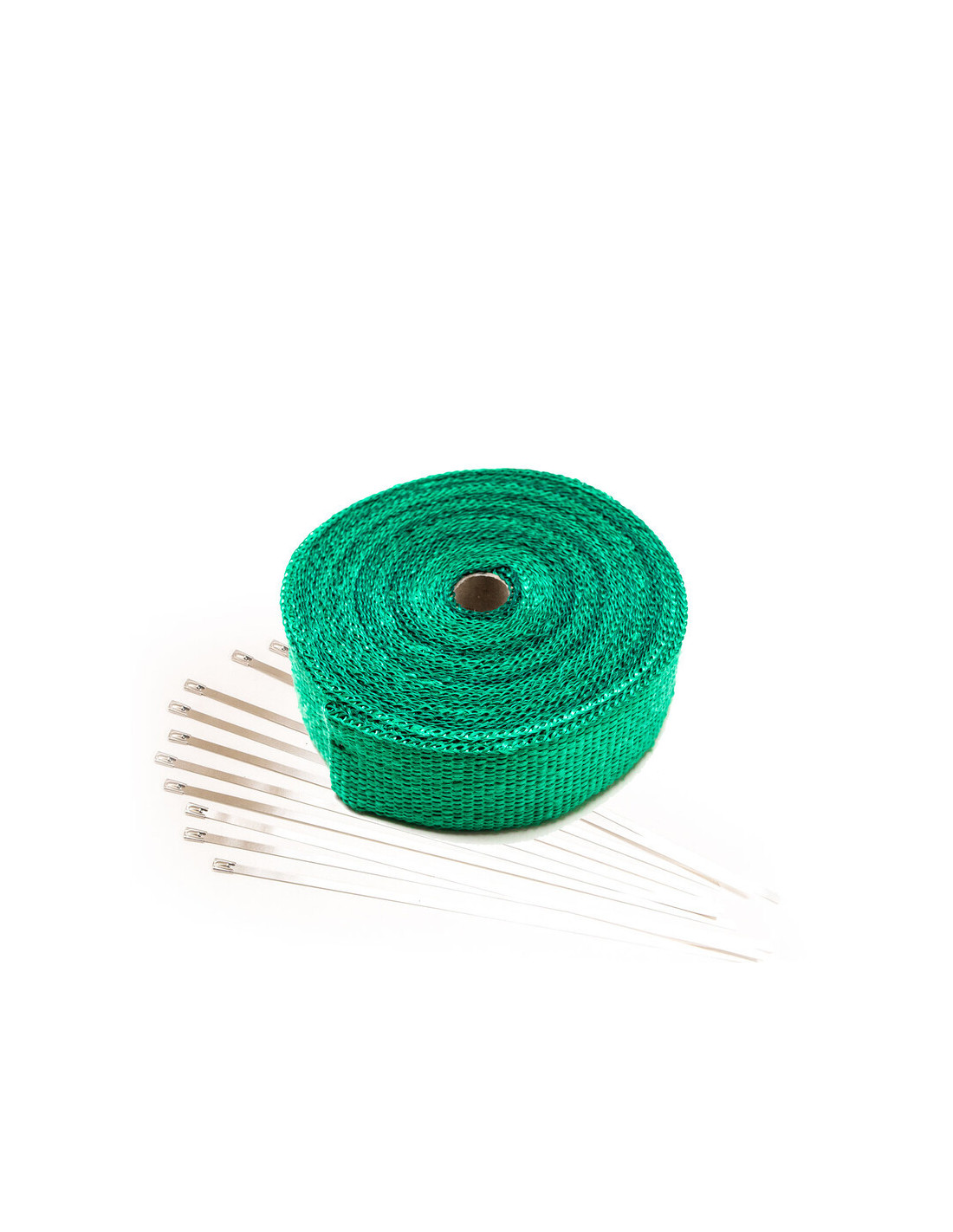 Fascia termica verde per collettori di scarico e fascette in acciaio inox