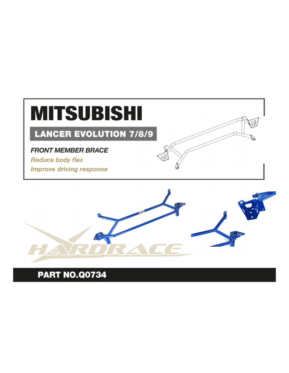 Barra rinforzo Hardrace per Mitsubishi Lancer evolution. Ideale per migliorare la precisione di guida, la stabilità dell'assetto e la risposta dello sterzo. Caratteristiche dal produttore : - * Requires removal of bumper beam 1PCS/SET