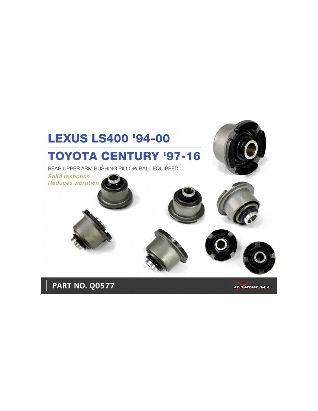 Silent block Hardrace per Lexus LS, Toyota Century. Ideale per migliorare la precisione di guida, la stabilità dell'assetto e la risposta dello sterzo. Caratteristiche dal produttore : - Pillow Ball Equipped 4 PCS/SET