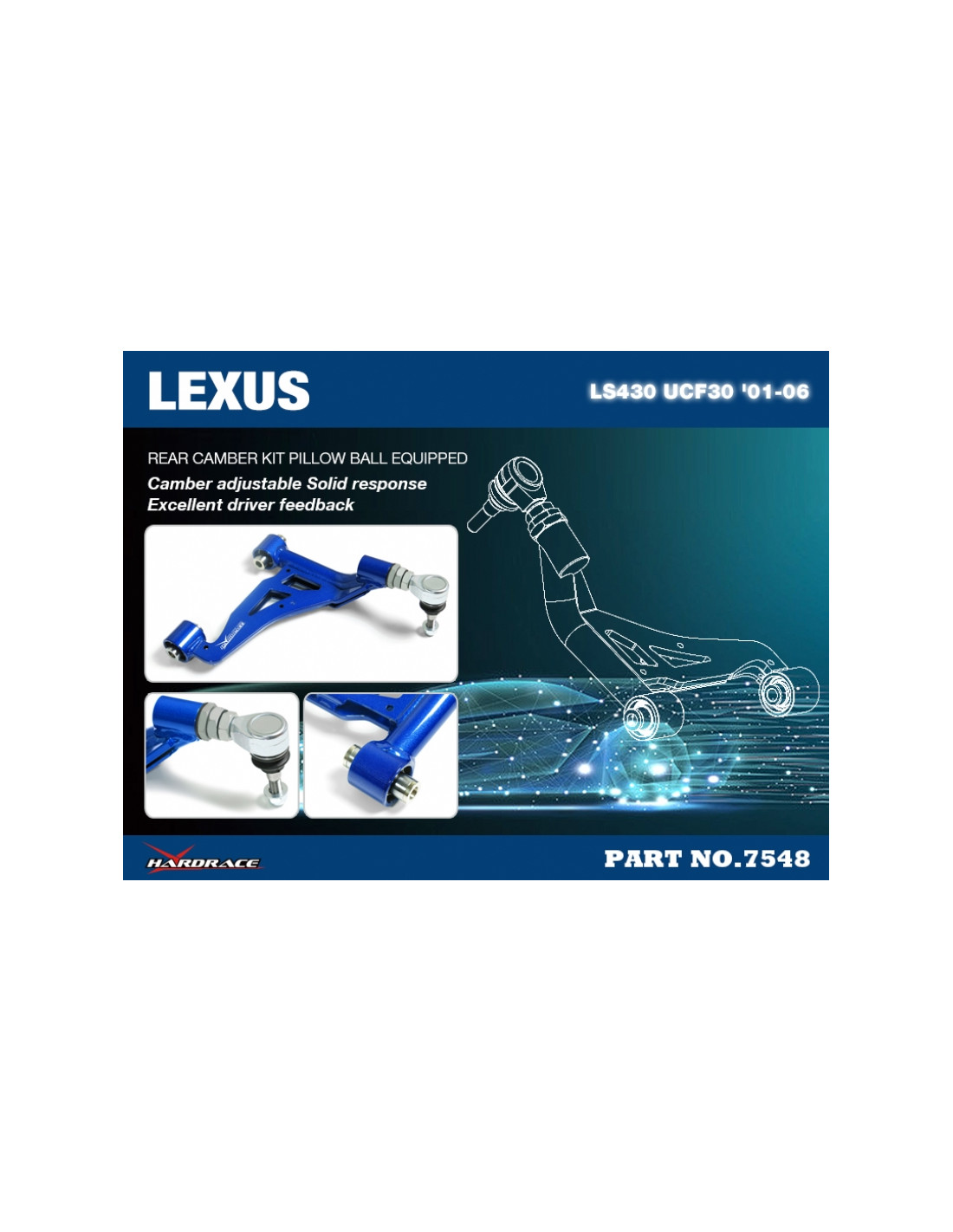 Braccio sospensione Hardrace per Lexus LS, Toyota Celsior. Ideale per migliorare la precisione di guida, la stabilità dell'assetto e la risposta dello sterzo. Caratteristiche dal produttore : - Pillow Ball Equipped. 2 PCS/SET