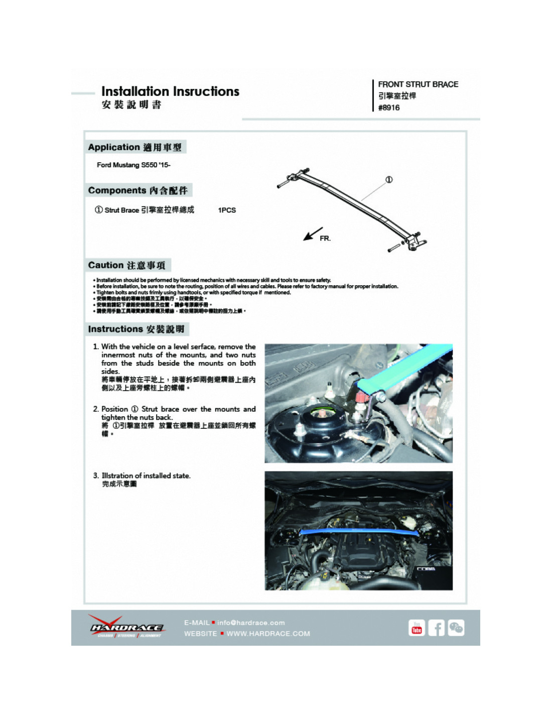 Barra rinforzo Hardrace per Ford Mustang. Ideale per migliorare la precisione di guida, la stabilità dell'assetto e la risposta dello sterzo. Caratteristiche dal produttore : - For 2.3T Use 1 PCS/SET