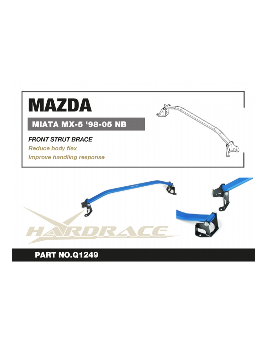 Barra rinforzo Hardrace per Mazda MX-5 MIATA. Ideale per migliorare la precisione di guida, la stabilità dell'assetto e la risposta dello sterzo. Caratteristiche dal produttore : - 1 PCS/SET