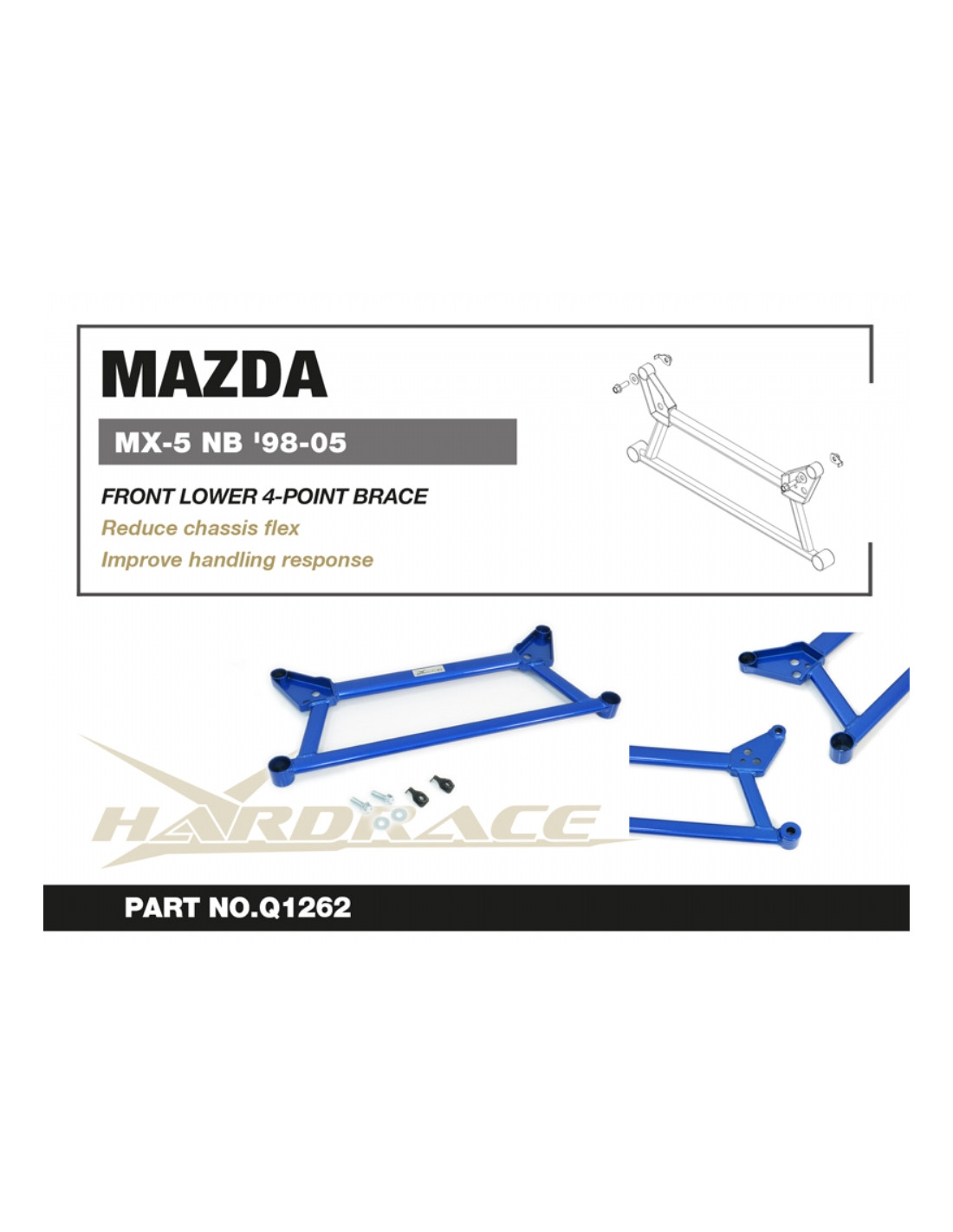 Barra rinforzo Hardrace per Mazda MX-5 MIATA. Ideale per migliorare la precisione di guida, la stabilità dell'assetto e la risposta dello sterzo. Caratteristiche dal produttore : - 1 PCS/SET