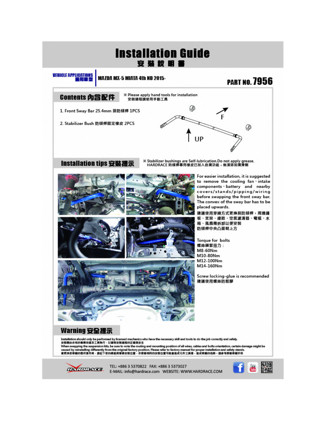 Barra stabilizzatrice Hardrace per Mazda MX-5 Miata. Ideale per migliorare la precisione di guida, la stabilità dell'assetto e la risposta dello sterzo. Caratteristiche dal produttore : - 25.4 mm 3 PCS/SET