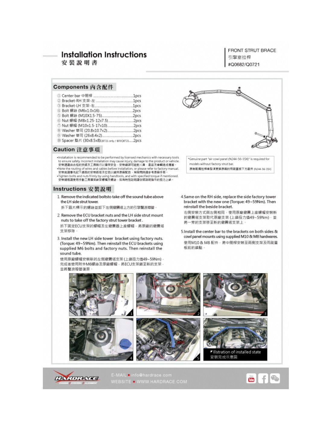 Barra rinforzo Hardrace per Mazda MX-5 Miata. Ideale per migliorare la precisione di guida, la stabilità dell'assetto e la risposta dello sterzo. Caratteristiche dal produttore : - 1 PCS/SET * FOR LHD USE * Genuine part "air cowl panel (N244-56-35X)" is required for models without factory strut bar.