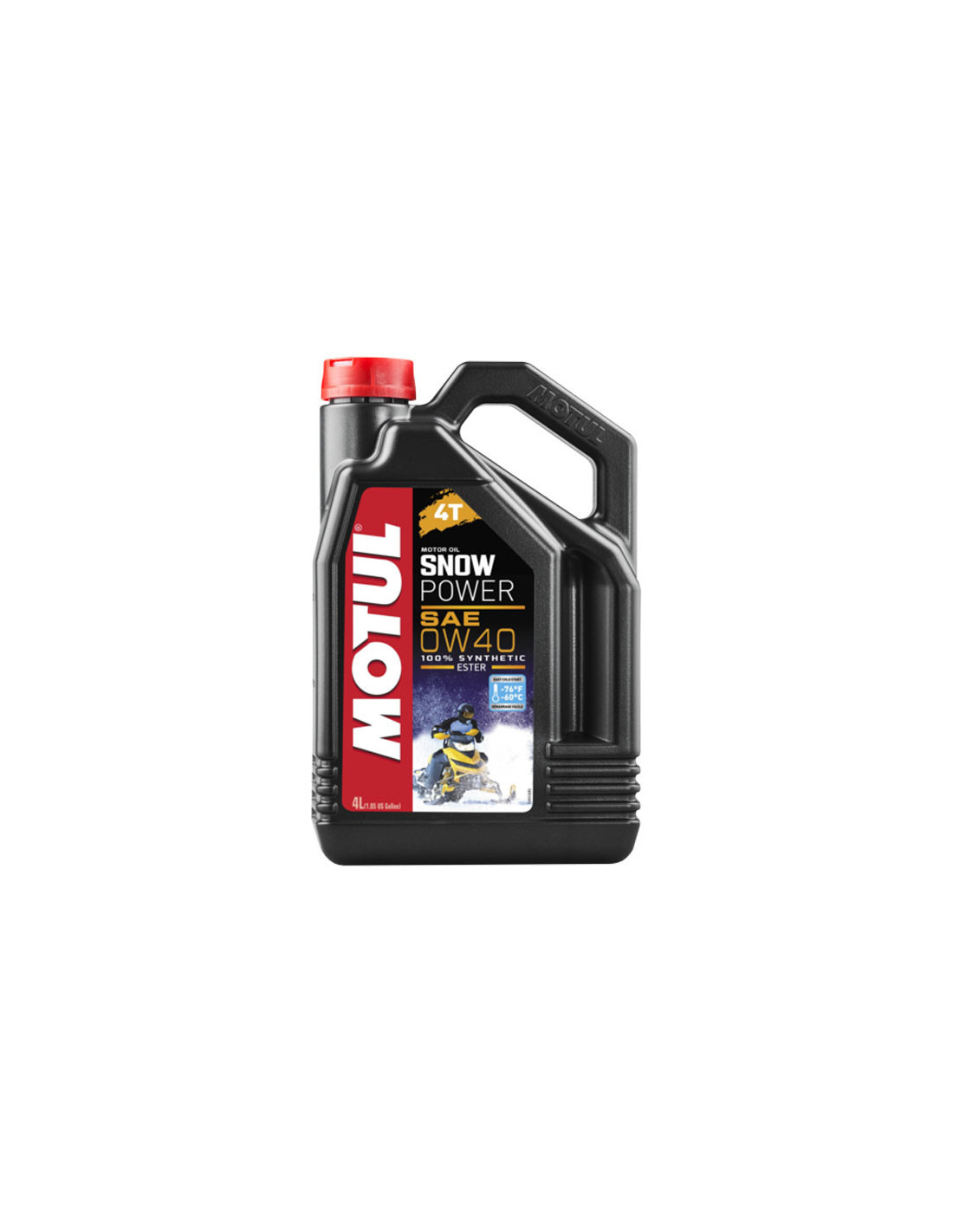 Motul Snowpower 4T 0W40 Progettato per motori a 4 tempi ad alte prestazioni Grado 0W40 100% sintetico Adatto a Yamaha Ski-Doo BRP Artic Cat Lynx Consigliato per uso agonistico Confezione: flaconi da 4 litri Specifiche dell'olio motore Motul Snowpower 4T 0W40 Progettato specificamente per motoslitte dotate di motori a 4 tempi ad alte prestazioni, questo olio 100% sintetico è particolarmente adatto per Yamaha Ski-Doo BRP Cat Artic e Lynx. È anche raccomandato per uso agonistico e può essere utilizzato su quad o altri veicoli ricreazionali. Questo Motul Snowpower 4T 0W40 è compatibile con benzina con e senza piombo, carburanti invernali, biocarburanti e convertitori catalitici.