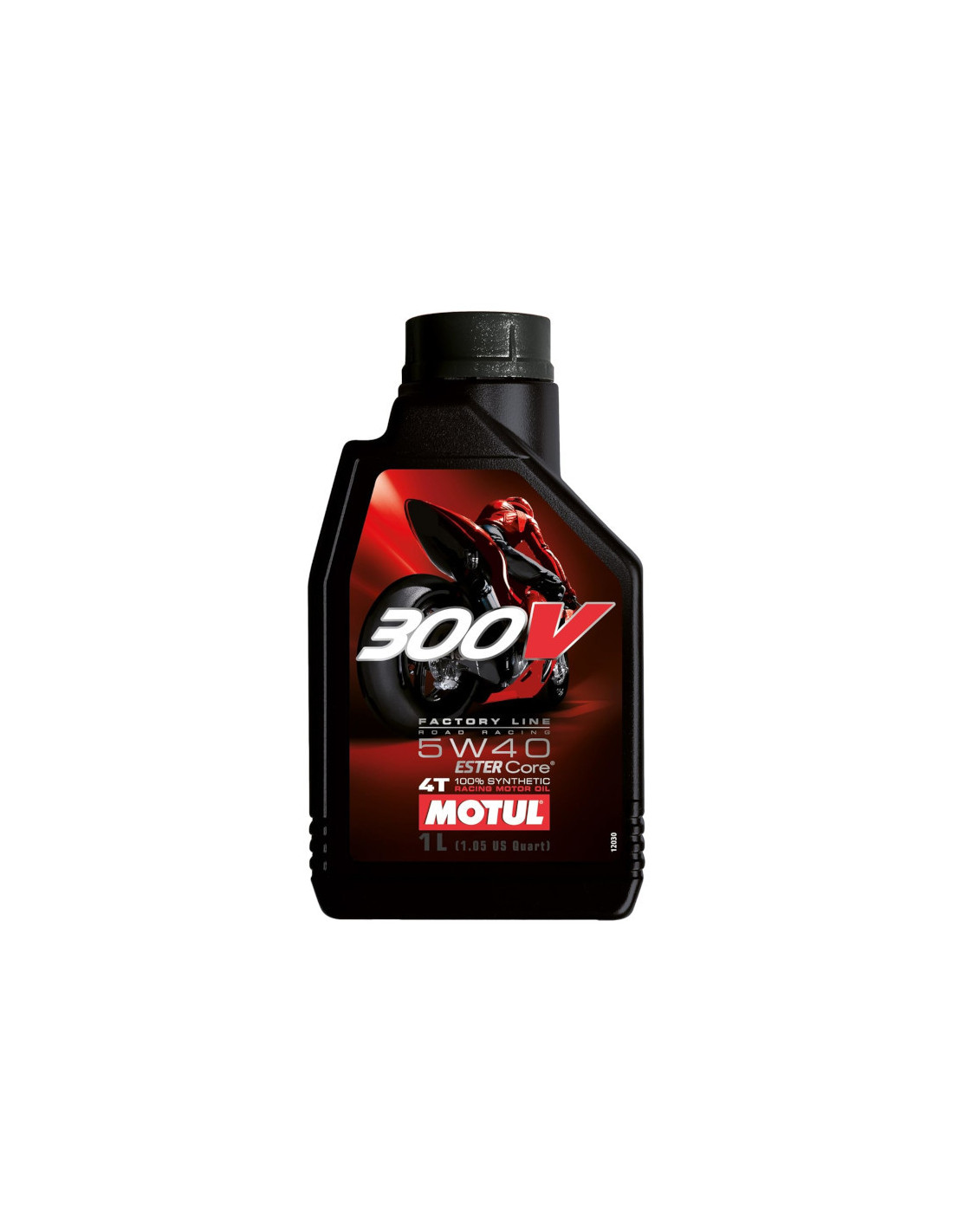 Motul 300V FL Road RacingAdatto a motori di moto a 4 tempiGrado: 5W40Base 100% sintetica con tecnologia ESTER CoreOttimizzato per un uso intensivo su strada e in pistaMassima protezione del motore ed estrema affidabilitàMigliorata efficienza del motoreStabilità alle alte temperatureVenduto per 1 litroOlio motore per moto Motul 300V 4T FL Road Racing 5W40 (1L)Motul 300V 4T Factory Line Road Racing è un olio ad alte prestazioni 100% sintetico per motori di moto a 4 tempi utilizzati in pista e nelle corse su strada. È adatto a motori con cambio integrato o non integrato e frizioni a bagno d'olio o a secco. Questo lubrificante è specificamente progettato per motociclette che competono in gare Endurance, SuperSport, SuperBike, Superstock, MotoGP, gare in salita o drag racing, ecc. È inoltre compatibile con moto dotate di catalizzatori, sidecar, ATV, ecc. Dotato della tecnologia ESTER Core, questo olio top di gamma è formulato con esteri combinati con altri oli base sintetici ad alte prestazioni e una gamma di additivi innovativi. Questa tecnologia consente la massima potenza del motore senza compromettere affidabilità e usura. Garantisce un aumento di potenza fino all'1,3%, una protezione ottimale del cambio, un'estrema riduzione dell'attrito interno e una pressione dell'olio costante indipendentemente dalle condizioni di utilizzo. Questo olio soddisfa i requisiti della norma JASO T903 sul funzionamento delle frizioni a bagno d'olio. Per prestazioni ottimali del motore e della frizione, Motul raccomanda di non mescolare questo lubrificante con altri oli sintetici o minerali. L'intervallo di cambio olio deve essere adattato in base all'utilizzo.