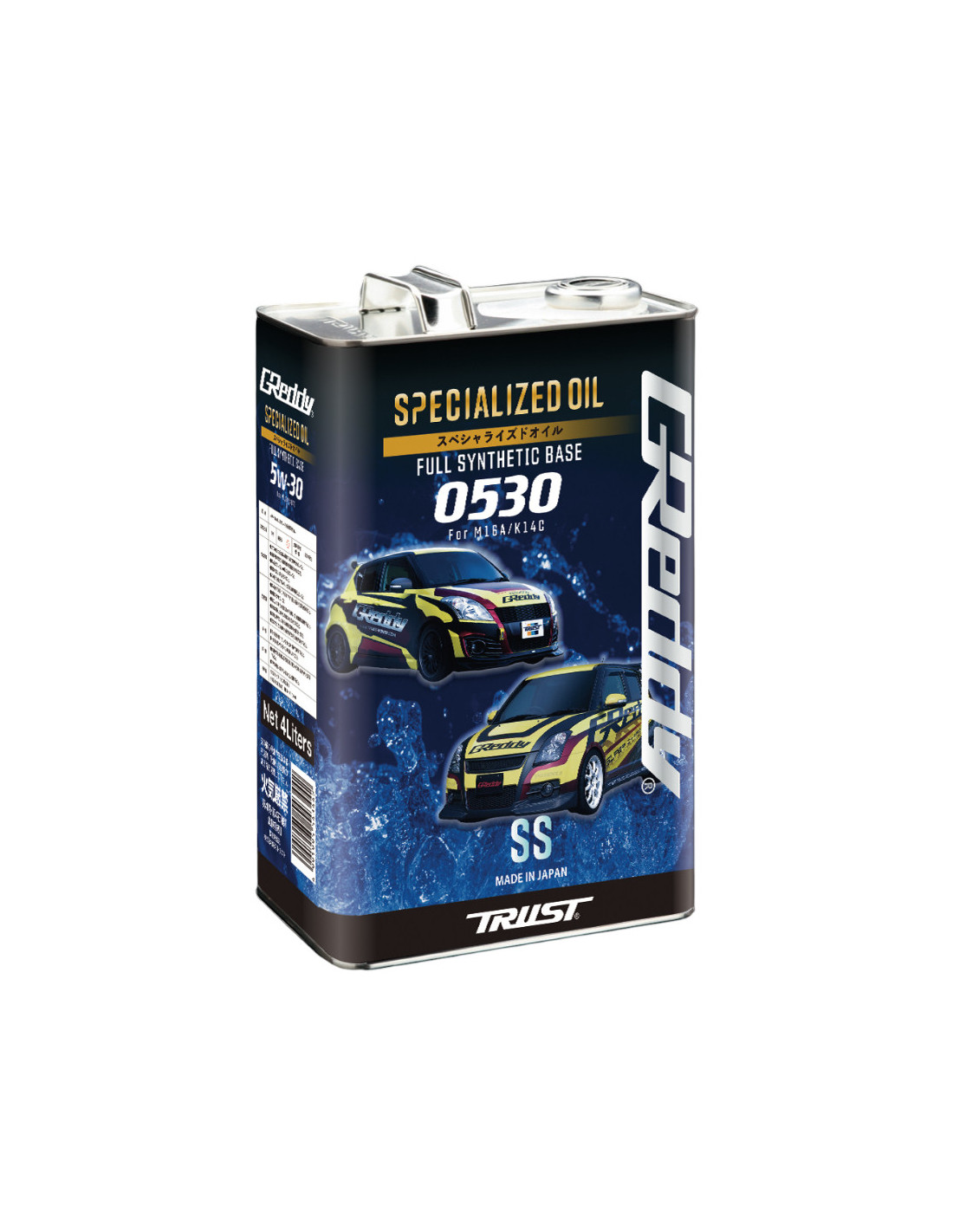 Olio motore GReddy 0530 SS 100% sintetico Specificamente formulato per l'uso stradale della Suzuki Swift Sport Grado: 5W30 Confezione: tanica da 4 litri Codice GReddy: 17501275 Olio motore specializzato GReddy 0530 SS (4L Swift Sport) Specifiche GReddy 0530 SS (per "Street Spec") è un lubrificante motore ad alte prestazioni specificamente progettato per i motori M16A e K14C della Suzuki Swift Sport utilizzati in città e in autostrada. Assicurando una lubrificazione completa del motore in tutte le condizioni di guida e in tutti gli intervalli di temperatura, la sua formula a base di idrogeno (H-I) combina efficienza nei consumi, rispetto dell'ambiente e un'elevata protezione. Questo olio contiene additivi DI che offrono eccellenti prestazioni di pulizia e dispersione, nonché un'elevata stabilità all'ossidazione. Previene l'autoaccensione a bassa velocità (LSPI) che può colpire i motori turbo a iniezione diretta e riduce il rischio di danni a pistoni e bielle causati da questo fenomeno. Prodotto in Giappone, questo olio sintetico al 100% è confezionato in lattine da 4 litri.