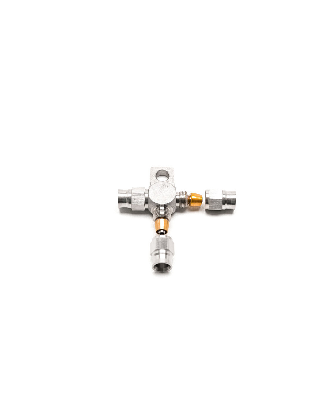Raccordo a T Dash 3 di Cooling Solutions. I nostri raccordi Dash 3 sono tra i più resistenti e sicuri disponibili. Sono realizzati con tecniche di crimpatura (con raccordo a oliva) derivate dal settore aeronautico e sono progettati principalmente per l'utilizzo con tubi freno e frizione su misura. I raccordi Dash di Cooling Solutions sono realizzati in alluminio forgiato e successivamente sottoposti a trattamento termico. Sono compatibili con tutti i tipi di carburante e lubrificanti, come liquido freni, benzina, diesel, etanolo, nitrometano, olio e alcol. Il nostro servizio "su misura" vi permette di selezionare tutti gli elementi necessari per la vostra configurazione (lunghezza, diametro e raccordi). Assemblati internamente, vengono consegnati direttamente a voi pronti per l'installazione!