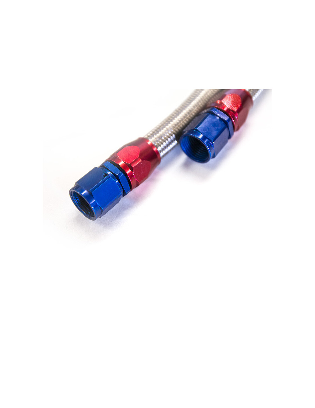 Tubi flessibili intrecciati per radiatore dell'olio - Raccordi in lega Dash 10 (venduti in coppia) Questi tubi flessibili intrecciati sono adatti per installazioni personalizzate di radiatori dell'olio. Con una treccia rinforzata in acciaio inossidabile e connettori in alluminio di grado aeronautico, sono adatti alla maggior parte delle applicazioni. Hanno filettatura -10 (-10 AN) e misurano 140 cm ciascuno. Disponiamo anche di un radiatore dell'olio completo con tubi flessibili e piastre sandwich.