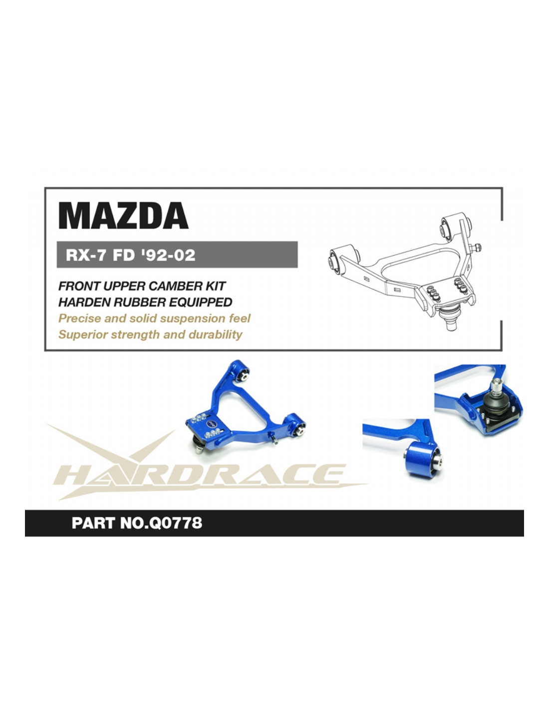 Braccio sospensione Hardrace per Mazda RX-7. Ideale per migliorare la precisione di guida, la stabilità dell'assetto e la risposta dello sterzo. Caratteristiche dal produttore : - Pillow Ball Equipped. 2 PCS/SET V2.