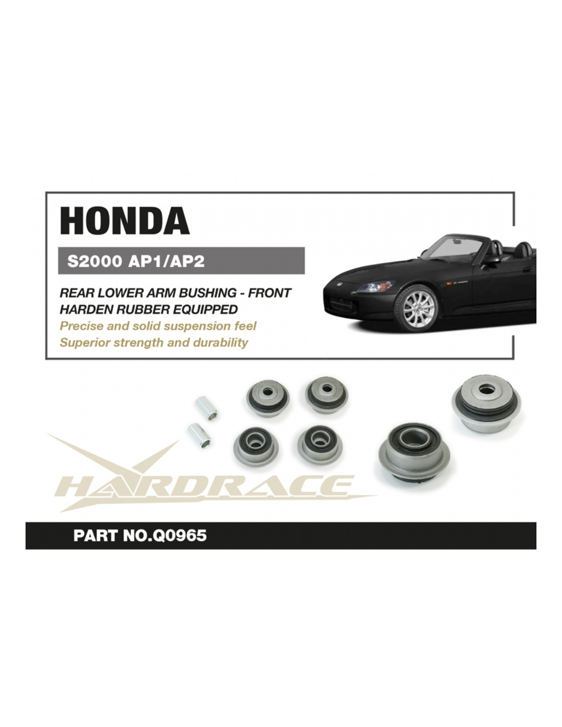 Silent block Hardrace per Honda S2000. Ideale per migliorare la precisione di guida, la stabilità dell'assetto e la risposta dello sterzo. Caratteristiche dal produttore : - Location: Front Side Harden Rubber Equipped 6 PCS/SET