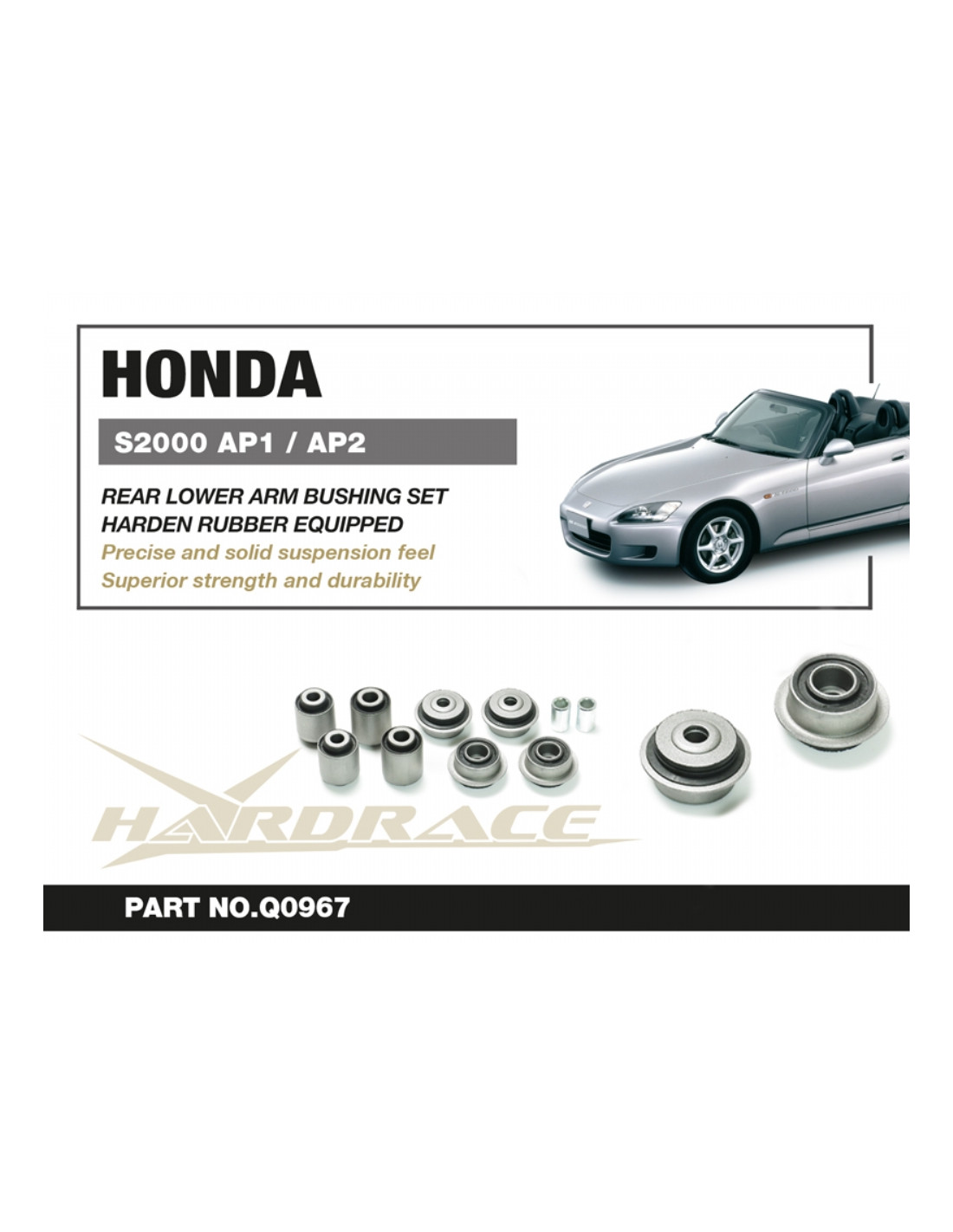 Silent block Hardrace per Honda S2000. Ideale per migliorare la precisione di guida, la stabilità dell'assetto e la risposta dello sterzo. Caratteristiche dal produttore : - Harden Rubber Equipped 10 PCS/SET