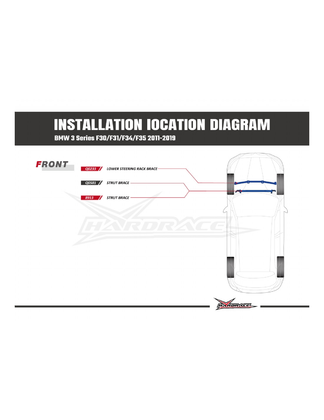 Barra rinforzo Hardrace per BMW 3 Serie. Ideale per migliorare la precisione di guida, la stabilità dell'assetto e la risposta dello sterzo. Caratteristiche dal produttore : - 1 PCS/SET FITS 5-HOLES FRONT STRUT For N20/B48/B58 Engines Only