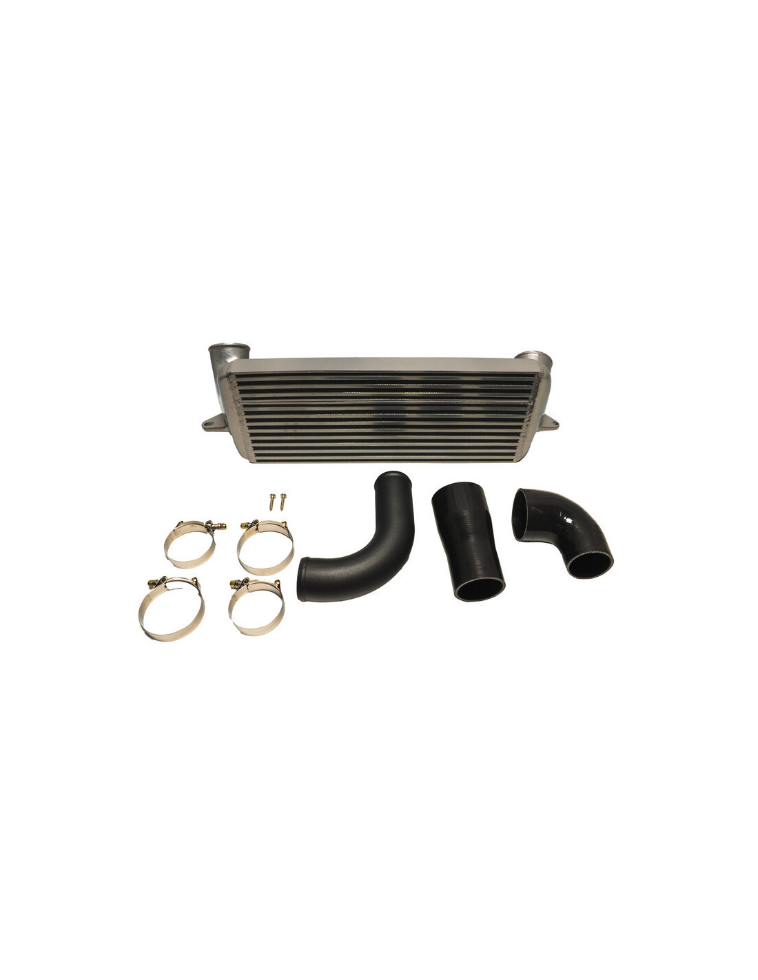 Questo kit intercooler da 5" include tutto il necessario per sostituire l'intercooler frontale OEM. Si tratta di un kit a montaggio diretto, il che significa che non sono necessarie modifiche permanenti. Si noti inoltre che non è necessario rimuovere il paraurti per l'installazione. Il kit viene fornito completo di tubo di sovralimentazione inferiore, raccordi, fascette e bulloneria di montaggio.