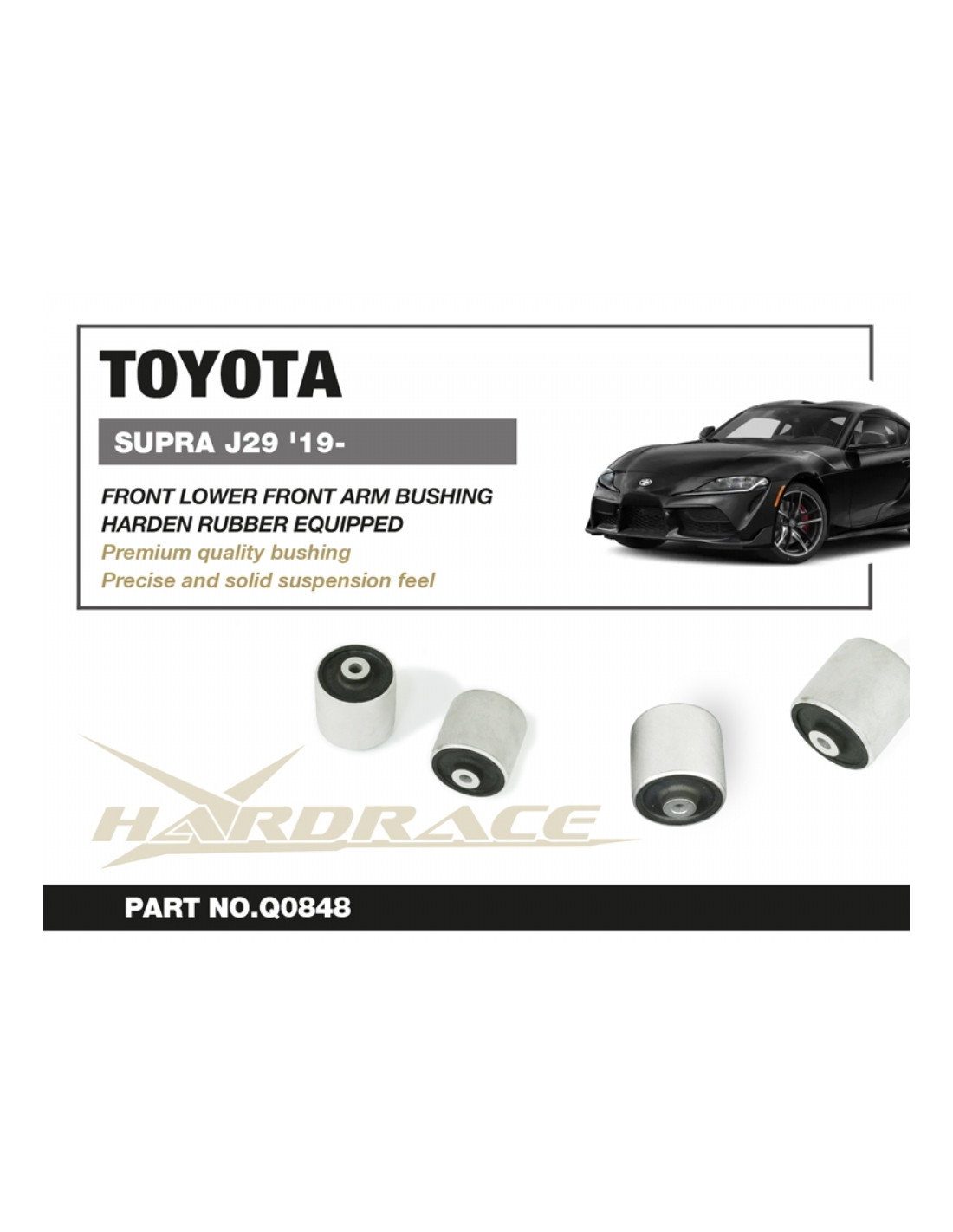 Silent block Hardrace per BMW Z4, Toyota Supra. Ideale per migliorare la precisione di guida, la stabilità dell'assetto e la risposta dello sterzo. Caratteristiche dal produttore : - Harden Rubber Equipped * X3 G01: For cars built after Jan 2018 Only 2 PCS/SET