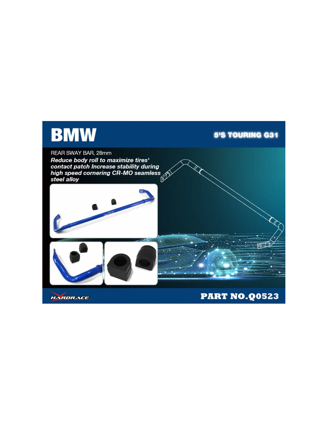 Barra stabilizzatrice Hardrace per BMW 5 Serie. Ideale per migliorare la precisione di guida, la stabilità dell'assetto e la risposta dello sterzo. Caratteristiche dal produttore : - Rear 28 mm Suitable for non-dynamic drive models 3 PCS/SET