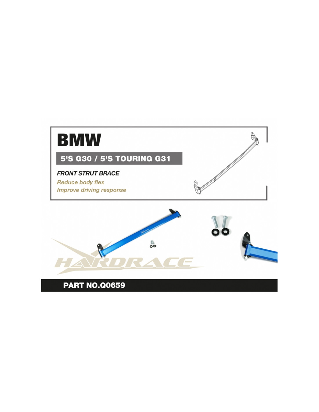 Barra rinforzo Hardrace per BMW 5 Serie. Ideale per migliorare la precisione di guida, la stabilità dell'assetto e la risposta dello sterzo. Caratteristiche dal produttore : - V2. 1 PCS/SET For Gasoline / Diesel Models *Not for M550i/M550d/M5 Use