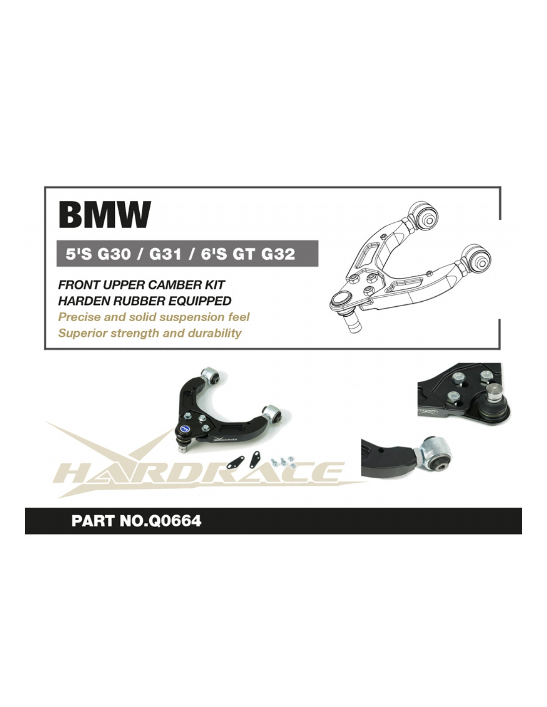 Braccio sospensione Hardrace per BMW 5 Serie, 6 Serie. Ideale per migliorare la precisione di guida, la stabilità dell'assetto e la risposta dello sterzo. Caratteristiche dal produttore : - Harden Rubber Equipped 2 PCS/SET