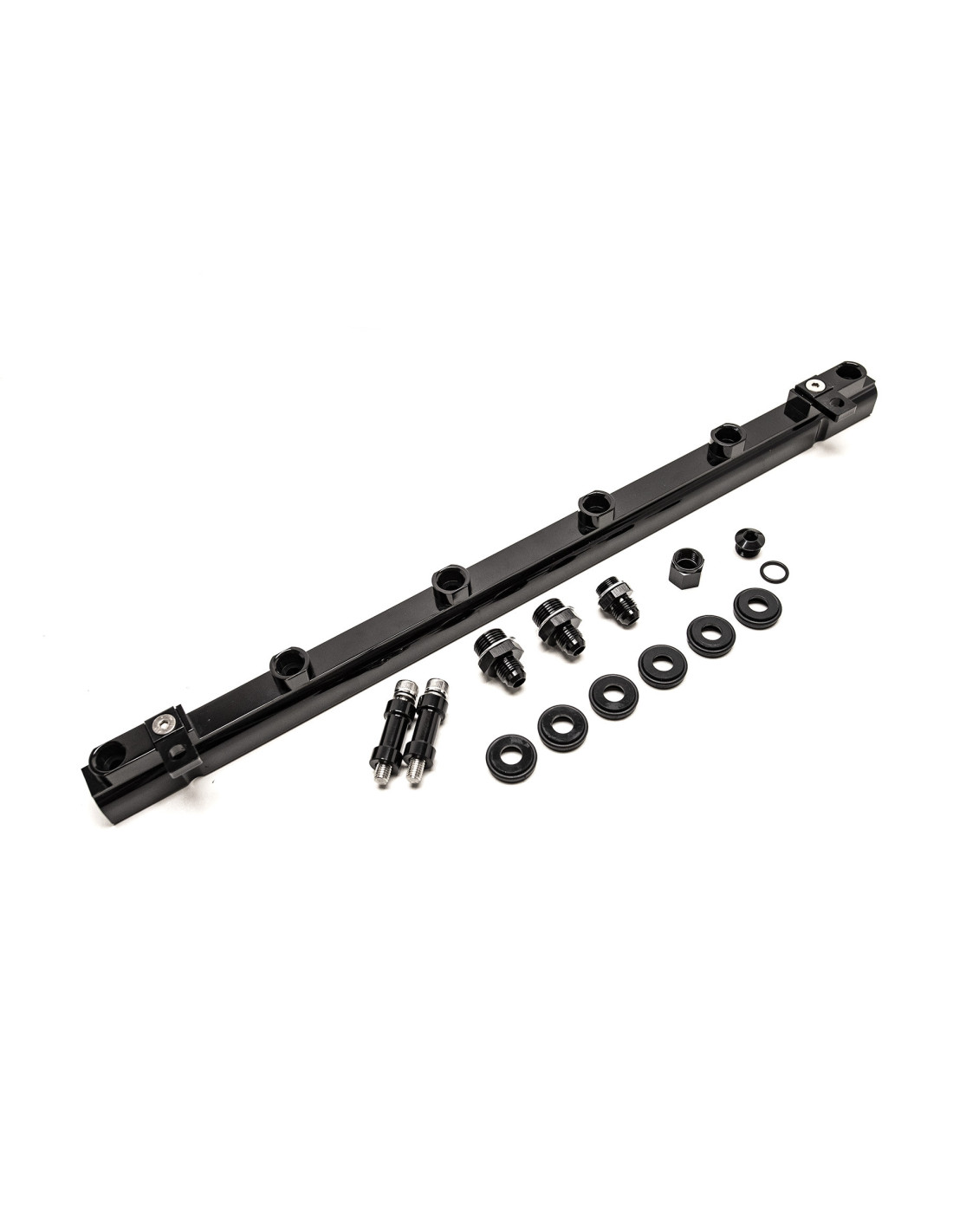 Specifiche del kit di rampe di alimentazione ad alta capacità Cooling Solutions: con un diametro interno di 16 mm, le rampe di alimentazione Cooling Solutions sono particolarmente adatte a veicoli altamente elaborati. Interamente realizzate in alluminio forgiato, sono dotate di due ingressi femmina con filettatura 3/4"x16 (Dash 8), un'uscita femmina da 9/16"x18 (Dash 6) e 6 porte per iniettori Ø14 mm. Sono inclusi adattatori maschio utilizzabili con un sistema di alimentazione Dash 6 personalizzato. Gli adattatori sono necessari se si monta questa rampa con un sistema di aspirazione diverso da quello originale. L'ampio diametro interno di questa rampa garantisce una grande capacità di carburante, consentendo di smorzare le pulsazioni e la contropressione generate da iniettori di grandi dimensioni. Ogni rampa viene fornita con tutti gli accessori di montaggio necessari (viti, adattatori, supporti e tappi, se presenti, ecc.).