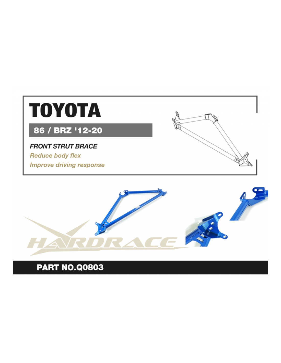 Barra rinforzo Hardrace per Scion FR-S, Subaru BRZ, Toyota 86. Ideale per migliorare la precisione di guida, la stabilità dell'assetto e la risposta dello sterzo. Caratteristiche dal produttore : - 1 PCS/SET